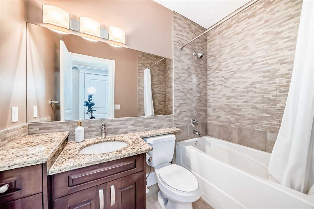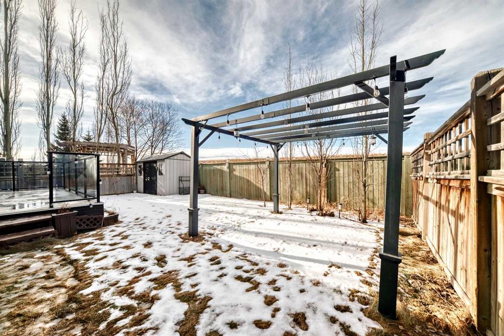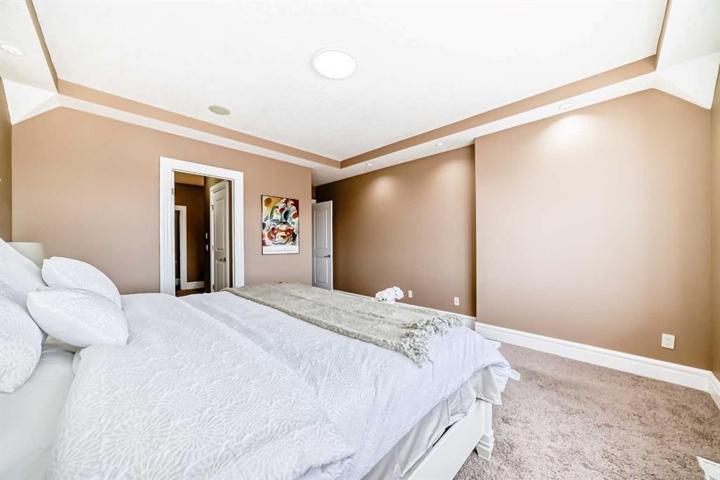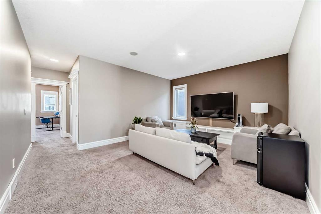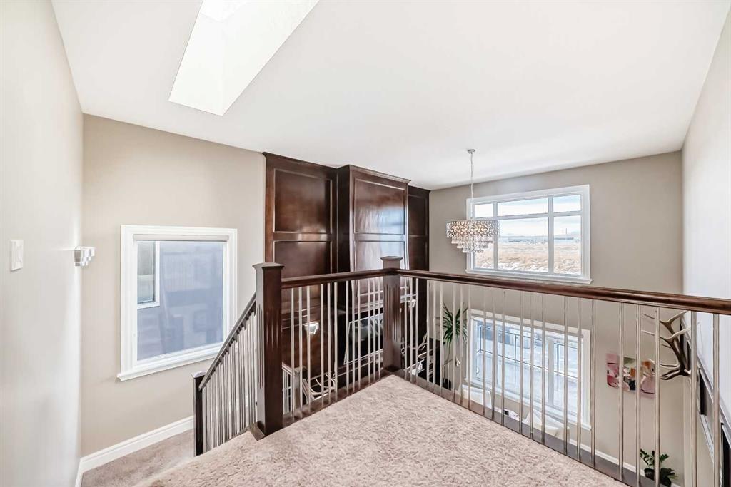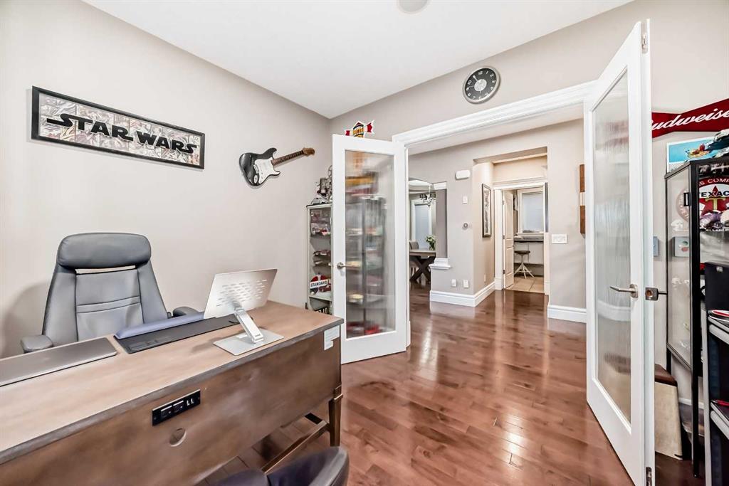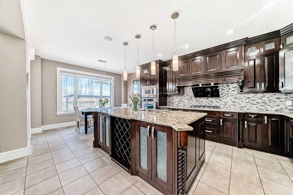 Welcome to this stunning former Show Home in the highly desirable community of Wentworth Hill SW, offering premium finishes, thoughtful upgrades, and timeless design. This beautifully maintained home features 4 bedrooms, 2.5 bathrooms, and a bright open-concept layout ideal for modern family living and entertaining. Extensive upgrades include custom trim, crown moulding, detailed woodworking, LED lighting, and built-in ceiling speakers. The main floor offers a spacious living area and a private home office, perfect for remote work. The chef-inspired kitchen showcases custom cabinetry, granite countertops, stainless steel appliances, a large central island with wine rack and beverage cooler, tiled backsplash, and a glass-top stove with built-in microwave and oven. The impressive great room features a 20-foot ceiling, oversized windows, a skylight, hardwood flooring, and a striking gas fireplace with a two-storey wood mantel, creating a bright and elegant living space.Upstairs, the primary suite includes dual closets, double vanities with granite countertops, a soaker tub, and a tiled shower. Three additional bedrooms are complemented by a media room, a full bathroom, and a convenient upper-floor laundry room. Enjoy a private backyard retreat with an oversized vinyl deck with glass railing, natural gas BBQ hookup, and a pergola—ideal for outdoor relaxation and entertaining.Recent upgrades include: FOTILE range hood fan, 5-head gas cooktop, kitchen water purification system, whole-house fresh paint, updated interior and exterior lighting, and duct cleaning. A rare opportunity to own a move-in-ready former show home in one of Calgary’s most sought-after communities.