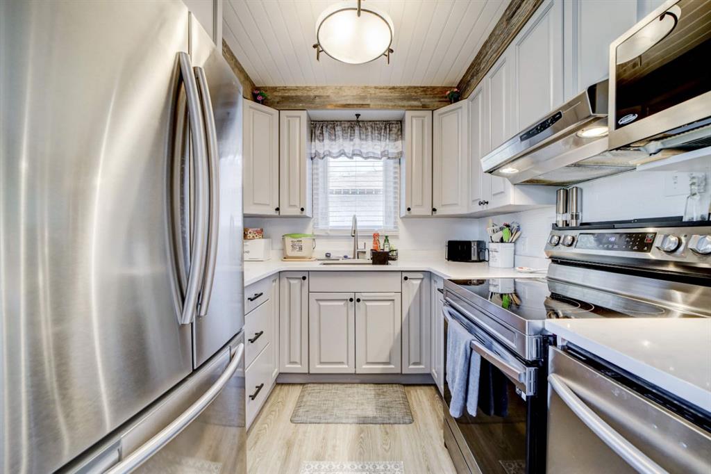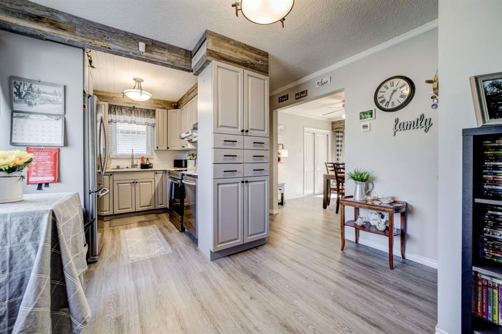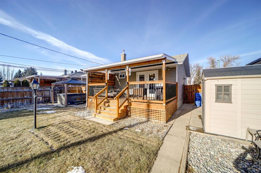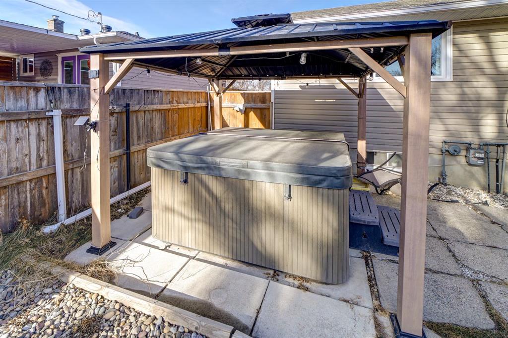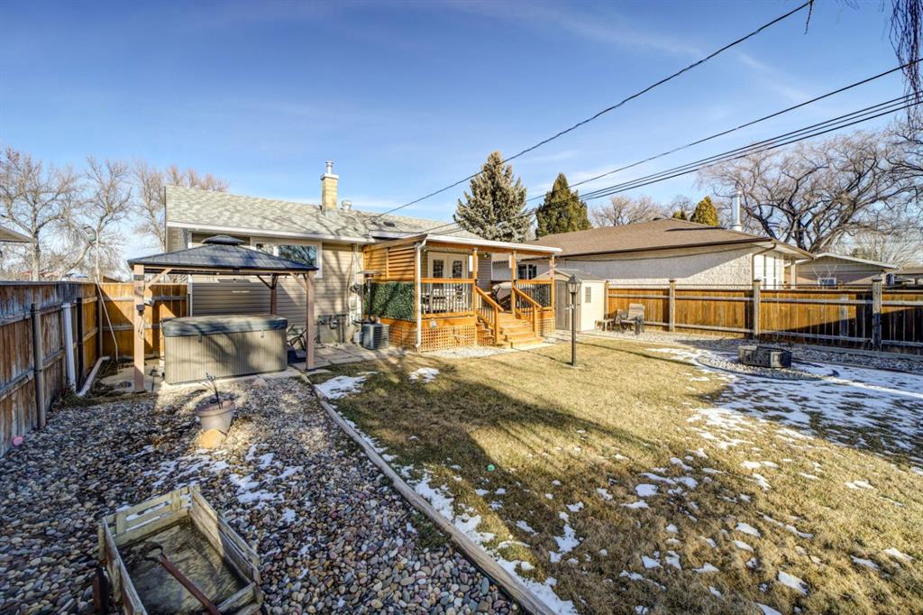 This is the kind of home that feels familiar in the best way — well cared for, full of memories, and ready for its next chapter. Set directly across from the Norbridge playground and basketball court, the lifestyle here is hard to beat. Morning coffees on the wood front porch come with park views, while evenings are spent on the covered deck, meeting neighbours, or unwinding in the hot tub out back. The large fully fenced yard and included hot tub with gazebo make this home equally suited for entertaining, relaxing, and everyday family life. Inside, the home offers 2 bedrooms, 2 bathrooms, and a large family room, with updated vinyl plank flooring throughout. The main floor bathroom has been fully renovated, and the kitchen has been refreshed with professionally repainted cabinetry and new quartz countertops. The dining room was previously a third bedroom and could be converted back if desired. Major updates over the years include newer windows, updated plumbing, a hot water tank (2022), furnace (2023), and central A/C. The newer single detached garage is insulated and drywalled, and the newer concrete driveway provides parking for up to three vehicles — a rare bonus in this price range. While there’s still room to add your own finishing touches, it’s clear this home has been loved by the same family for many years and thoughtfully updated along the way. Close to schools, shopping, recreation, and amenities, this home is an excellent opportunity for first-time buyers or anyone looking for solid value, a great location, and a home that’s ready to be loved for years to come.