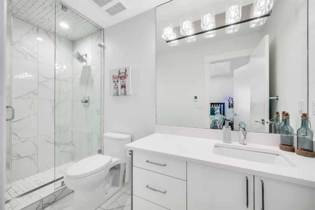 ***OPEN HOUSE: JANUARY 31st & FEBRUARY 1st 1:00pm-3:00pm*** Welcome to this stunning contemporary detached home in Banff Trail, offering over 3,100 sq. ft. of beautifully finished living space across all three levels-designed to balance upscale style with everyday comfort in one of Calgary’s most desirable inner-city communities. This home features air conditioning, a humidifier, built-in speakers (including outdoors), plus an A1 alarm and camera system paired with a Honeywell security setup, and approximately 3 years remaining on the structural warranty. Step inside to soaring 10-foot ceilings, engineered hardwood, modern tile, and sleek glass railings that elevate the open-concept design. The chef-inspired kitchen showcases a massive 15-foot quartz island, gas stove, and custom cabinetry-perfect for entertaining or daily living. The main floor is complete with a formal dining room, spacious great room with a gas fireplace, breakfast nook, and a convenient powder room. Upstairs offers a luxurious primary retreat with a spa-inspired ensuite featuring heated floors and a jetted tub, plus two additional bedrooms each with their own private ensuite, and convenient upper-level laundry. The fully finished basement continues the luxury with heated floors, a cozy family room with a second gas fireplace, wet bar, dedicated home gym, fourth bedroom, and full bathroom-ideal for guests or added living space. Outside, enjoy the freshly painted exterior, along with a fully fenced and landscaped backyard with a new pergola, concrete patio, and an insulated double garage. Ideally located close to the C-Train, U of C, parks, shopping, and several top-rated bilingual and French-immersion schools-offering unbeatable inner-city lifestyle and convenience.