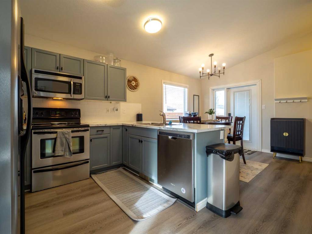 Welcome to this well-maintained bungalow offering a functional layout, thoughtful upgrades, and a great location close to Sunridge Park, the coulees, and nearby schools. The main floor is highlighted by vaulted ceilings and a spacious living room that flows seamlessly into the kitchen and dining area—ideal for both everyday living and entertaining. You’ll also find a generous primary bedroom with a walk-in closet, a second bedroom, and a full 4-piece bathroom on the main level. The fully developed lower level adds excellent additional living space with a large family room, a spacious bedroom, a 3-piece bathroom, a dedicated storage room, and a utility room complete with laundry. Comfort is enhanced year-round with central A/C and a new tankless hot water system installed in 2024. Outside, enjoy a composite two-tiered back deck perfect for relaxing or hosting, underground sprinklers servicing the front yard, side yard, and the planters surrounding the deck, and the convenience of a double detached garage offering ample parking and storage. An additional parking pad beside the garage provides excellent flexibility and can be used for RV parking. This home combines comfort, efficiency, and location—making it an excellent option for a wide range of buyers.