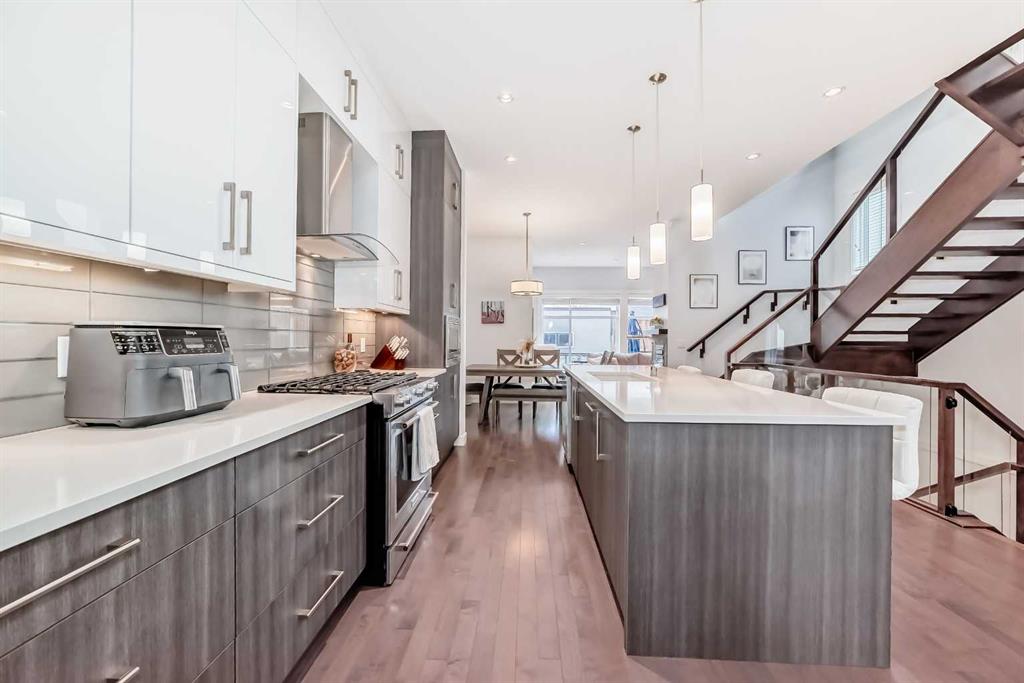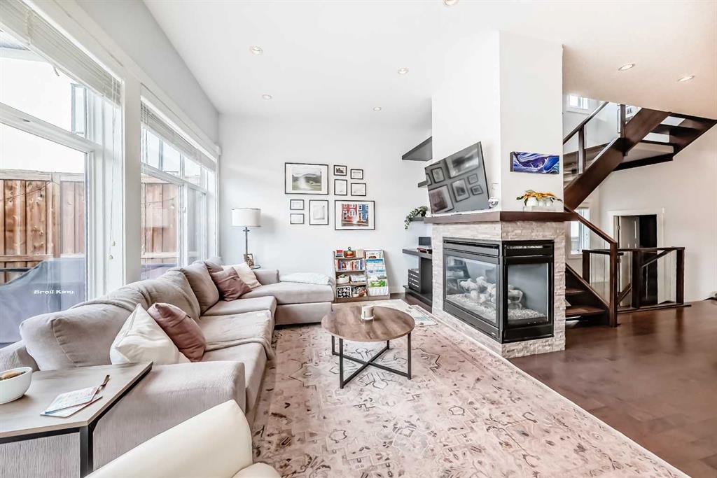 Luxury, location, and lifestyle converge in this exceptional inner-city designer home. Immaculately maintained and loaded with upgrades, this sophisticated two-storey residence offers over 2,800 sq ft of beautifully finished living space. The bright and airy main floor features a welcoming entryway that seamlessly flows into a front office—perfect for today’s work-from-home lifestyle. The heart of the home is a show-stopping chef’s kitchen, complete with floor-to-ceiling cabinetry, a massive island, oversized pantry, and high-end appliances including a gas range—ideal for both entertaining and everyday living. The main floor is thoughtfully completed with a generous dining area, an inviting living room with gas fireplace, a stylish powder room, and a mudroom. Upstairs, unwind in the luxurious primary retreat featuring a cozy two-way fireplace and spa-inspired ensuite with dual sinks, a deep soaker tub, fully tiled walk-in shower, in-floor heating and an oversized walk-in closet. Two additional bedrooms with large windows, a full 4-piece bathroom, and convenient upper-level laundry complete the second floor. The fully finished walk-out basement with in-floor heating offers a fourth bedroom, full bathroom, oversized storage room, and an expansive recreation space with wet bar—an entertainer’s dream. Step outside to the covered walk-out patio, perfect for a private outdoor lounge, with stairs leading to the sunny west-facing backyard and double detached garage. Additional highlights include 10’ ceilings on the main level, 9’ ceilings on the upper and lower levels, air conditioning, and a gas line for BBQ. Ideally located in the sought-after inner-city community of Richmond, this home is just minutes from Marda Loop, surrounded by parks and pathways, and offers quick access to shops, cafés, schools, and downtown. ***OPEN HOUSE SUNDAY FEB 1 from 1-3PM***