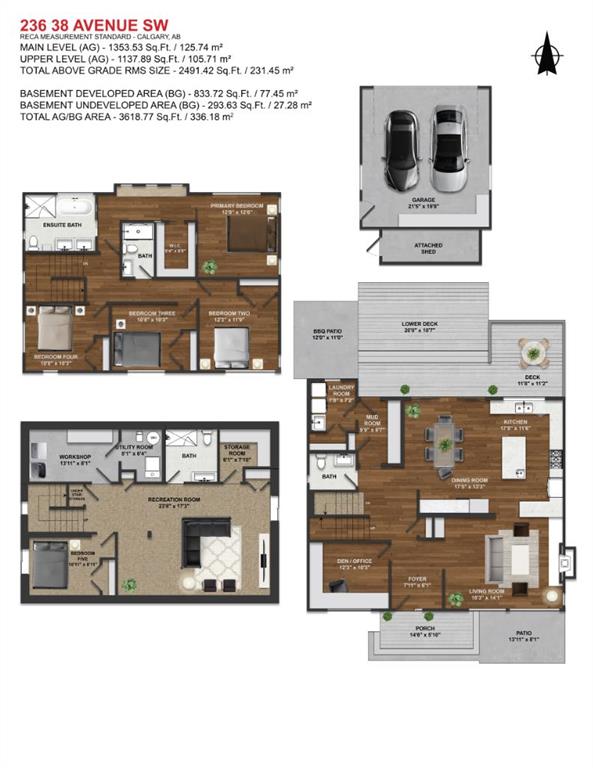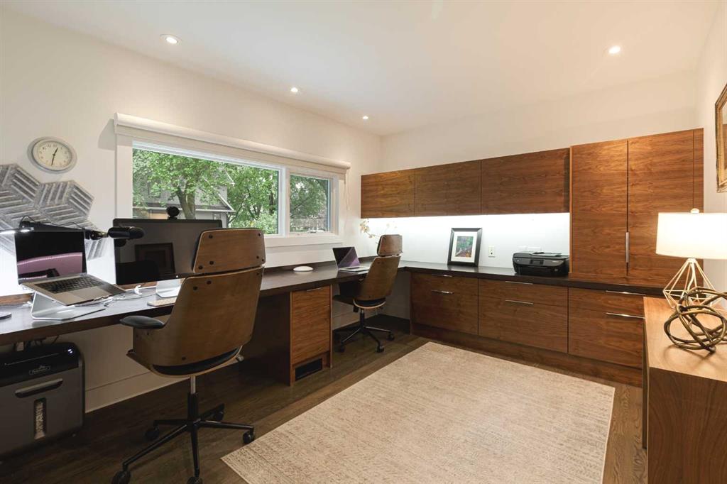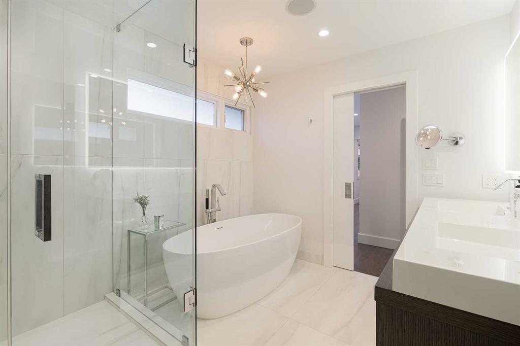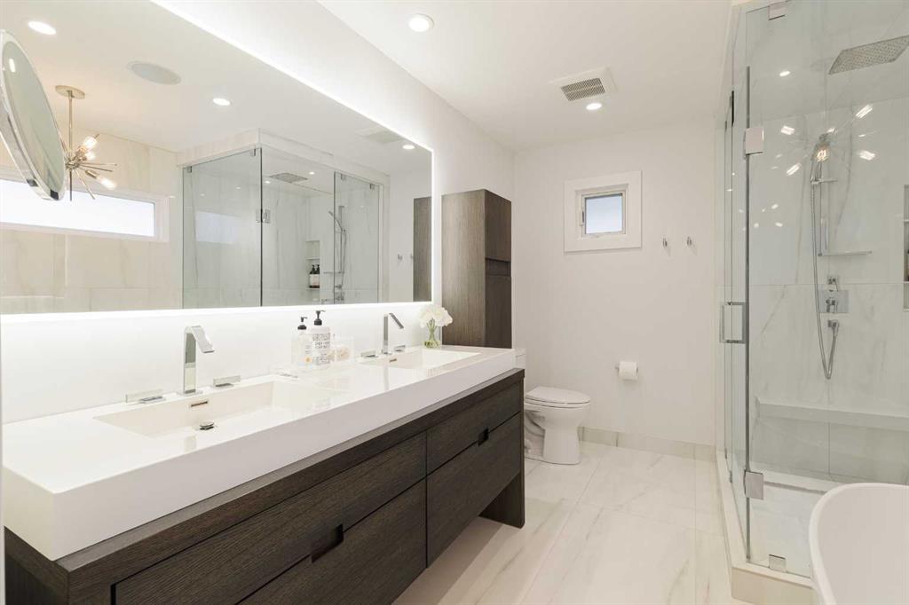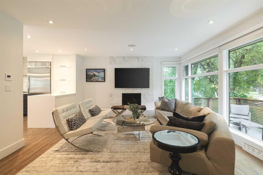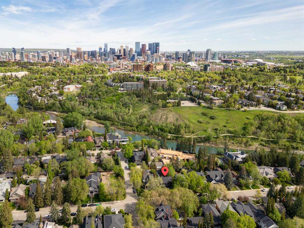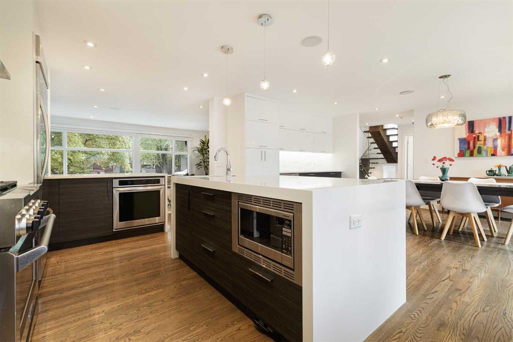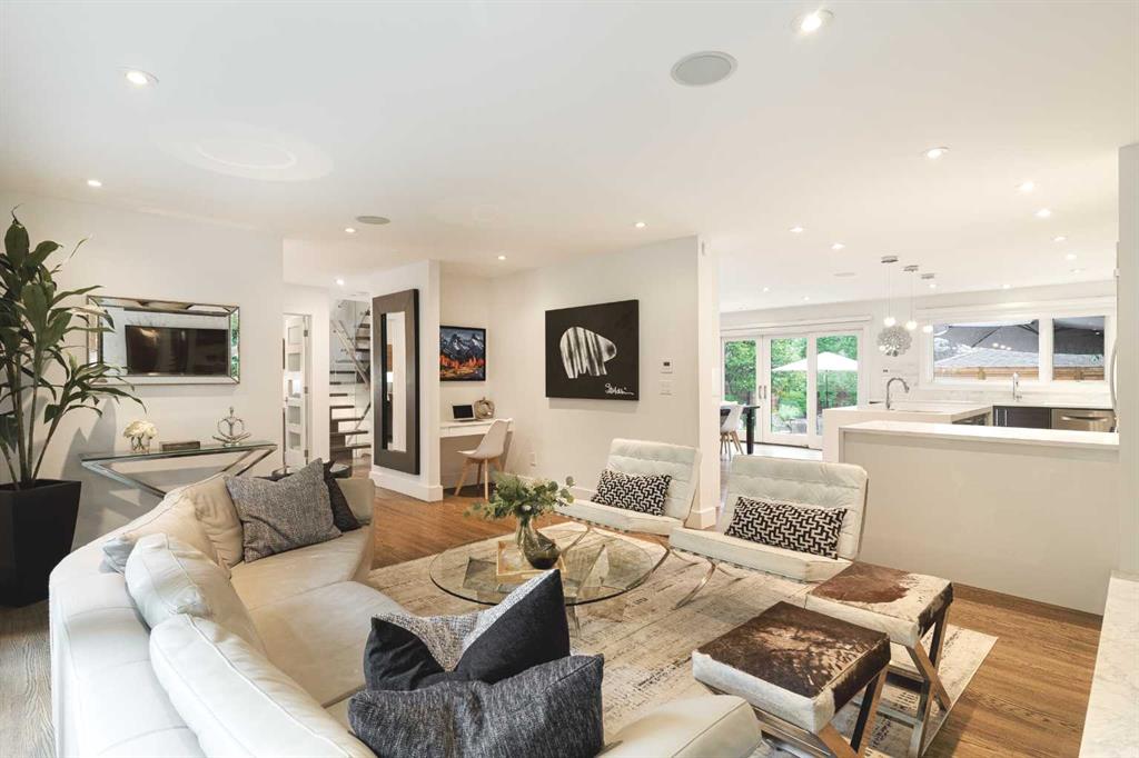 Welcome to 236 38 Avenue SW - a rare and exceptional opportunity on a 50 x 125-foot lot in prestigious East Elbow Park. Nestled on a quiet, tree-lined street just steps from the Elbow River, this beautifully renovated home offers an ideal blend of timeless elegance, modern functionality and a thoughtfully designed, family-friendly layout. Completely transformed in 2018 with a top-to-bottom renovation and offering over 3,600 sq ft of exquisitely developed living space, every detail was carefully considered to create a warm, inviting home designed for real living. One of the few homes in the area with 4 bedrooms on the upper level, this layout is perfectly suited to growing families who value both space and style. The serene primary suite spans the full width of the home and overlooks the lush, private, professionally landscaped backyard, supported by fully automated in-ground irrigation system. It features a spacious, meticulously designed walk-in closet and a spa-inspired 5-pc ensuite with heated floors. A striking, architecturally designed floating open rise glass staircase connects the levels and sets the tone for the main floor, which strikes a perfect balance between open-concept flow and defined, functional spaces. The sun-drenched front living room showcases south-facing floor to ceiling windows, gleaming hardwood floors, and an exceptional masonry wood burning fireplace. Just off the spacious front foyer - finished with heated limestone tile - is a dedicated home office with custom walnut built-ins, offering an ideal work-from-home setup. At the heart of the home, the dream kitchen and dining area are both stunning and highly functional. Highlights include a waterfall island with prep sink, a premium appliance package with a built-in counter depth fridge, 2 convection ovens and a 36” six-burner gas cooktop, and a cleverly designed 10-foot built-in sideboard offering extensive custom pantry storage, a beverage fridge, and a coffee bar. Large sliding doors open directly onto a massive tiered back deck - perfect for entertaining or simply enjoying the outdoors while children play in the large, landscaped yard. The thoughtful floor plan continues with a 1/2 bath and an exceptional mudroom with heated limestone floors, a skylight, featuring five custom lockers, a dedicated shoe closet, and abundant smart storage, along with a separate laundry room complete with a utility sink, generous counter space, and ample room for folding, hanging, and organization. Downstairs, the fully developed basement offers a cozy family room, a 5th bedroom, a 3-pc bathroom, space for a home gym, a well-sized walk-in storage closet, and a custom workshop area - ideal for hobbies or DIY projects. Set on a beautifully landscaped lot with detached double garage, this home is just minutes from downtown and walking distance to Calgary’s most beloved amenities, including top-rated schools, scenic pathways, Stanley Park Britannia Plaza and the shops and restaurants of Mission.