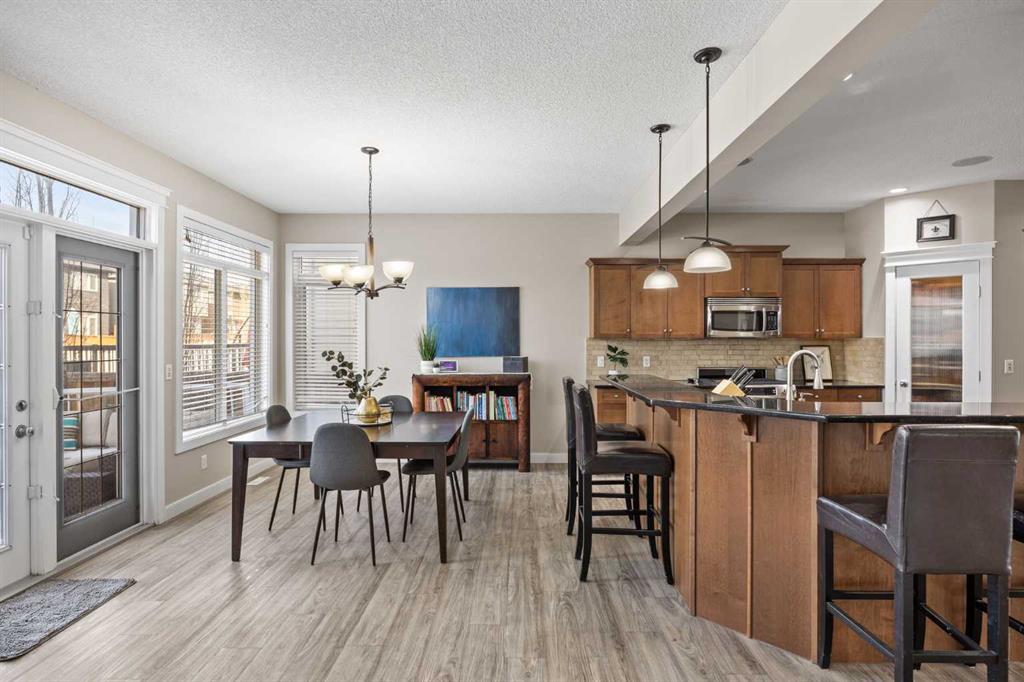 Offered by the original owners, this home has been thoughtfully maintained and well cared for since new. Its beautiful curb appeal is highlighted by classic dormers that add architectural interest and bring natural light to the upper level, along with a charming balcony over the garage framed by transom windows. With approximately 3360 sq ft of fully developed living space, the layout is practical, comfortable, and well suited for both everyday living and entertaining. Stepping inside, the main floor offers an open-concept design where a large kitchen connects seamlessly to the living and dining areas. The living room feels warm and inviting with a natural gas fireplace, while the dining space is perfectly sized for hosting friends and family. A dedicated main-floor office provides a quiet and functional space for working from home. Upstairs, the vaulted bonus room is a true standout—bright, spacious, and filled with natural light, with direct access to the front balcony, an ideal spot to enjoy the morning sun. This level also features upper-floor laundry, two generously sized bedrooms, and a spacious primary suite complete with a large ensuite and walk-in closet. The fully developed basement is designed with entertaining in mind. A large wet bar comfortably seats four, with plenty of room for larger gatherings, and opens to a generous recreation room anchored by a cozy gas fireplace. An additional bathroom on this level adds flexibility for guests and everyday use. Major updates include a brand-new furnace with a five-year warranty, and roof and siding replacement completed in 2015. Set on a corner lot, the home benefits from enhanced privacy and additional parking. Outside, the yard is beautifully landscaped with mature trees, a composite deck, and a rubber-coated concrete patio—perfect for relaxing or spending time outdoors. The location is exceptional, just steps from the Royal Oak Community Centre, William D. Pratt Middle School, and Royal Oak Elementary School, with easy walking access to Royal Oak Centre amenities and the Rocky Ridge YMCA. This is a well-rounded home in a highly convenient location, ideally suited for a growing family.