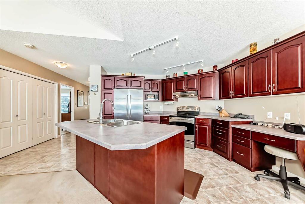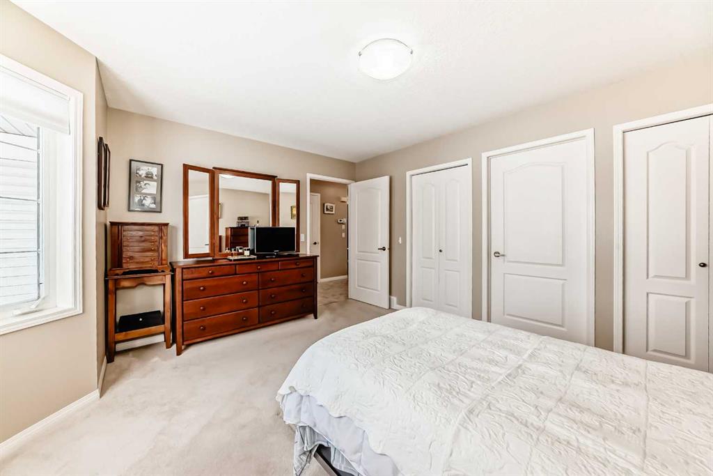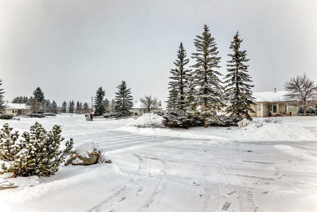 OPEN HOUSE February 1st 2-4, Welcome to Prince of Peace Village an Adult 55+ community on the edge of the City of Calgary. Easy access to the #1 highway and close to Calgary heading west or Chestermere heading east. Prince of Peace Village is a vibrant community with walking paths, Community Gatherings at the Centre and a natural setting. This villa comes with 2 bedrooms up, a 4 piece bathroom with dual access either from the Primary Bedroom or hall way. The Vaulted ceilings make the living room feel very spacious and open. A fireplace adds too the warmth of the area and the windows framing the fireplace bring in so much natural light. In the summer turn on the central air for comfort. throughout the home. The Kitchen is bright with a central island, and lots of counter & cupboard space. There is even a built in desk area. Dining Room is large enough for seating for 6. Sliding patio doors take you to a lovely patio with nature right at your door! The 2nd bedroom of this home is used as an office and could easily be the guest room or t.v. area. Laundry is also conveniently located on the main floor. This home is at the end of the cul de sac and there are no immediate neighbours to the west and is almost surrounded by greenspace. The condo fee includes snow removal, in winter and lawn care in the summer. Prince of Peace Village, a Beautiful place to call Home!