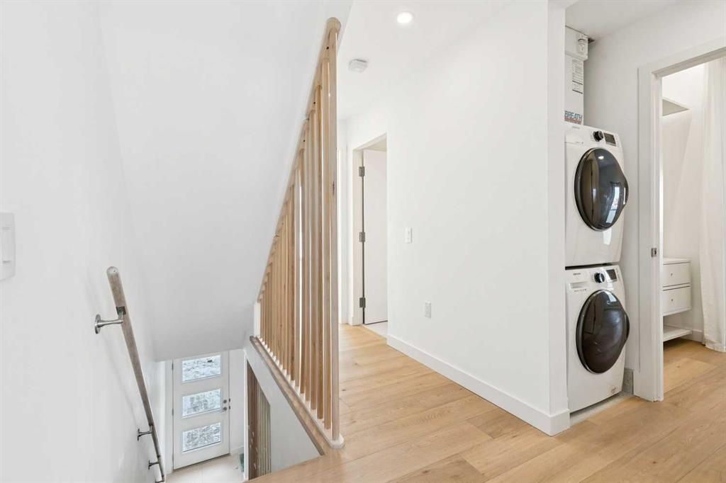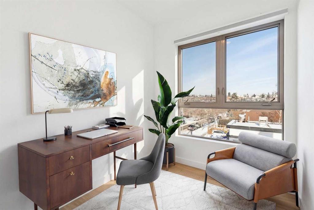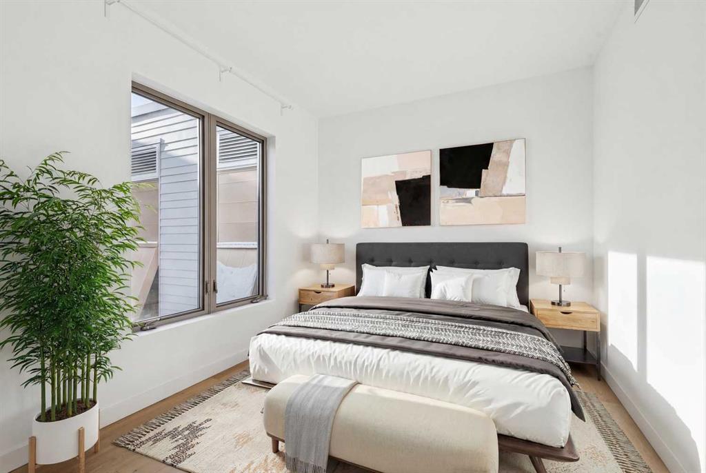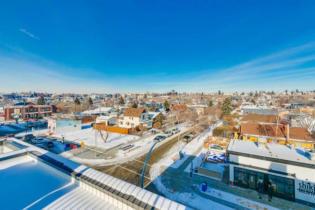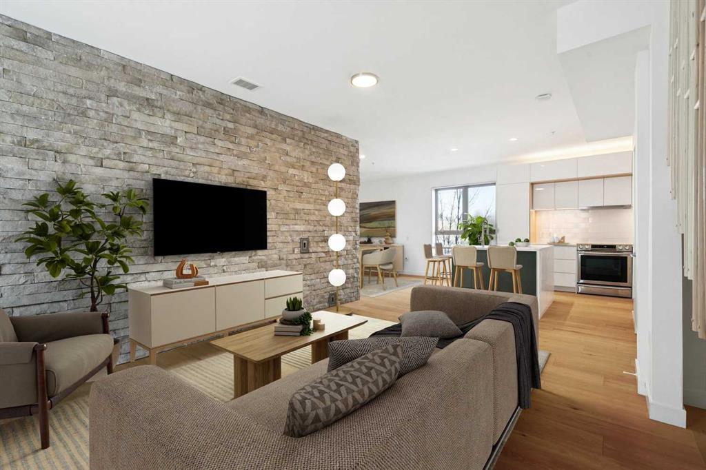 This impressive 1,187 sq. ft. premier townhome in the sought-after Vento complex truly has it all. Ideally located in the heart of historic Bridgeland, you’re just steps from trendy shops, popular restaurants and pubs, parks, the Bow River Pathway, and the LRT, with downtown Calgary and the Calgary Zoo only minutes away. This fully renovated home features 3 outdoor living spaces, 2 bedrooms plus a den, 2 bathrooms and 2 TITLED UNDERGROUND PARKING STALLS, along with a secure storage locker and dedicated bike storage. The Vento is a well-managed, LEED-certified green building designed for energy efficiency and comfort, complete with a Lifebreath Heat Recovery Ventilator that circulates fresh air throughout the home. Your private front entrance leads into a bright, open-concept main floor with 9-foot ceilings, hardwood flooring, and large windows that flood the space with natural light. The spacious living and dining areas flow seamlessly into the well-appointed kitchen, featuring ceiling-height cabinetry, ample counter space, stainless steel appliances and an island — perfect for both everyday living and entertaining. Upstairs, you’ll find a den, two generously sized bedrooms, and a full bath. The south-facing primary bedroom has a private ensuite and French doors that open onto a private balcony overlooking the courtyard. The real highlight - an expansive ROOFTOP PATIO, where you can relax or entertain while taking in the stunning downtown skyline — a rare and highly desirable urban luxury! Additional comforts include in-suite laundry and in-floor radiant heating. Combining space, sustainability, and an unbeatable inner-city location, this townhome offers outstanding value and lifestyle in one of Calgary’s most desirable communities. Book your private showing today.