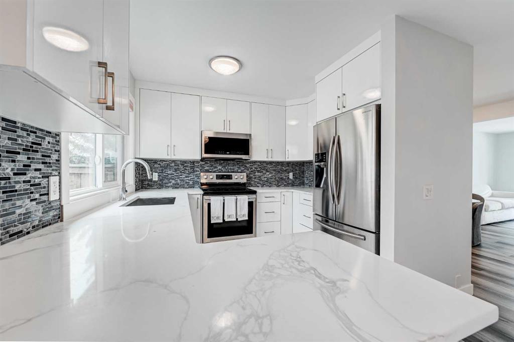 Welcome to 43 - 5019 46th Avenue SW. A beautifully upgraded, spacious, and light-filled home that is truly move-in ready. Thoughtful attention to detail is evident throughout, with flat ceilings, quartz countertops, luxury vinyl plank flooring throughout, upgraded vinyl windows, and newer high efficient furnace and hot water heater. Step outside to your private, fully fenced backyard—an inviting summer sanctuary complete with blooming flowers, climbing vines, and returning robins year after year. A built-in sprinkler system keeps the space effortlessly lush and green, while the charming rose garden out front adds instant curb appeal. Inside, the luxurious kitchen features soft-close cabinetry, Samsung stainless steel appliances, and generous counter space—perfect for everyday living and entertaining. The open-concept living and dining area is warm and welcoming, highlighted by a cozy electric fireplace framed in quartz. Custom wrought iron and wood railings add character and craftsmanship to the staircase. Upstairs, you’ll find two generously sized bedrooms, including a primary retreat with a two-piece ensuite. a large closet and mountain views. An open loft on this level offers a versatile space ideal for a home office, reading nook, or yoga area. The basement provides ample storage and convenient step-free access to the heated attached garage. Completing the picture are quiet neighbors on both sides and a safe, friendly complex where residents genuinely look out for one another—creating a peaceful, welcoming place to call home. Call today for you private viewing!