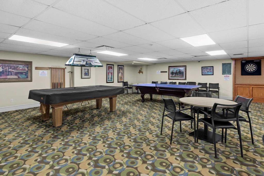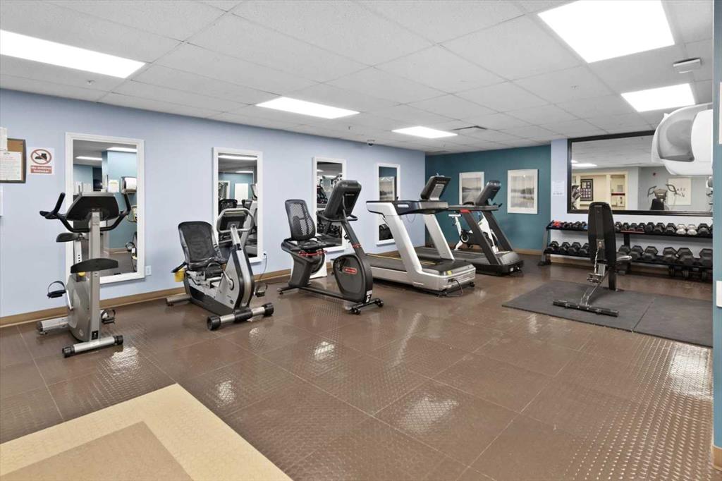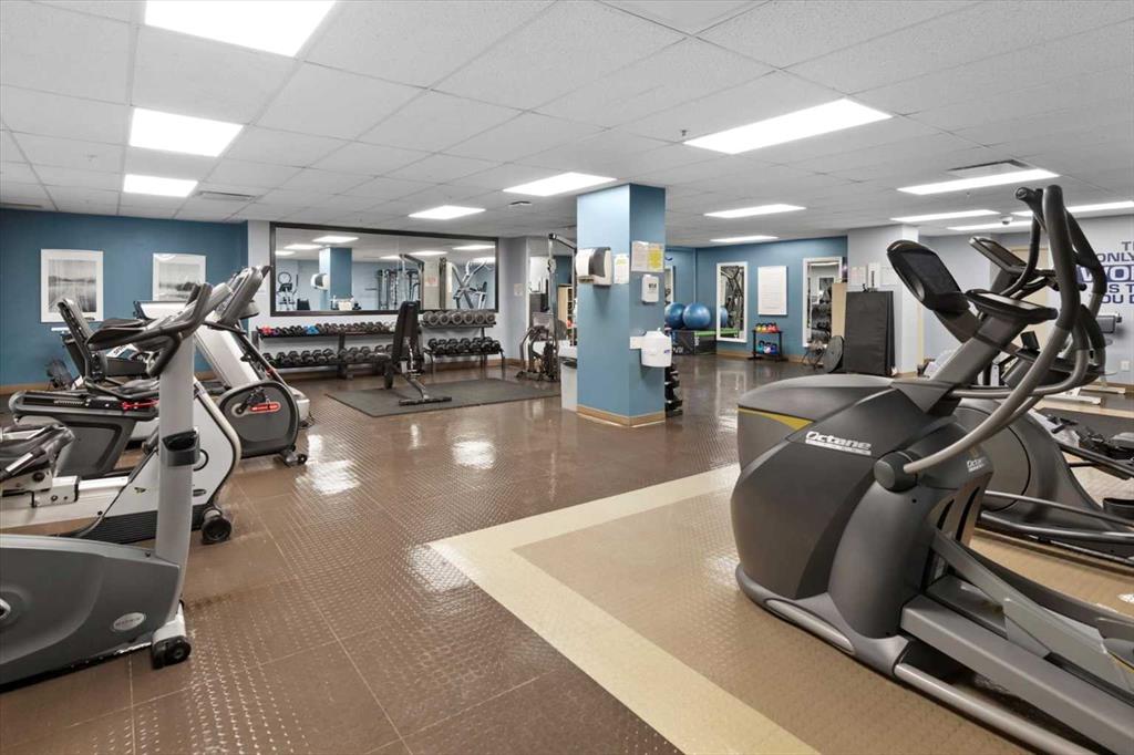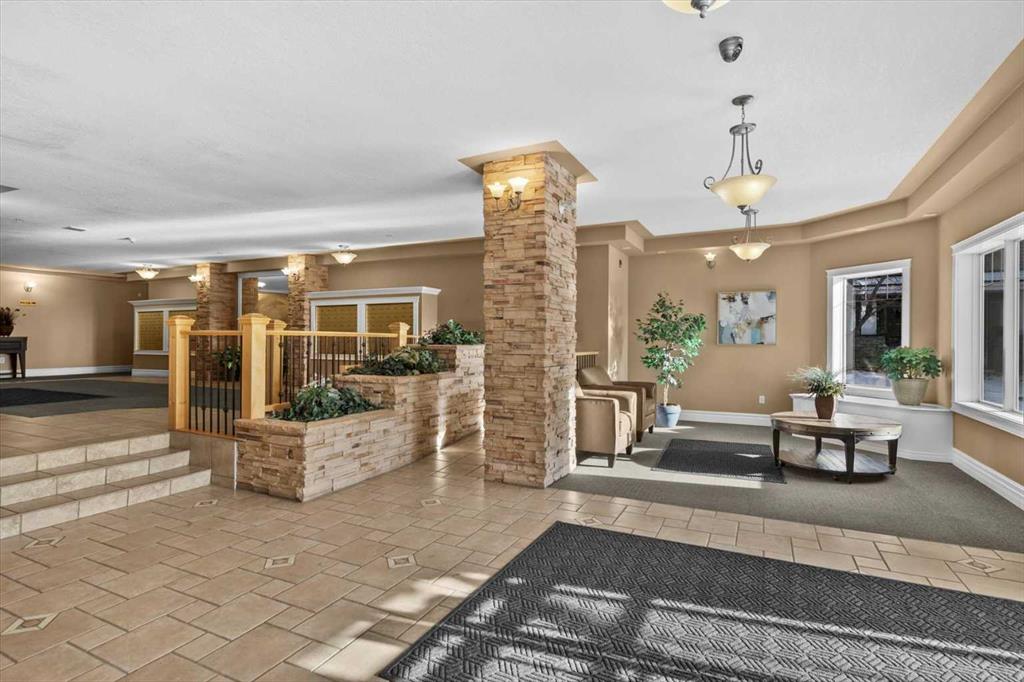 Welcome to this beautiful 2-bedroom, 2-bath unit featuring underground parking, fresh paint (2022), and vinyl flooring (2015). Large windows brighten the open-concept main living area, creating a spacious and inviting atmosphere. The kitchen is equipped with NEWER stainless steel appliances, and the east-facing balcony—with glass railing, on-deck storage shed, and a gas line for your BBQ—provides the perfect outdoor extension of your living space. The primary bedroom offers a walk-through closet with built-in storage shelves and a private ensuite. A second generously sized bedroom and a 4-piece bathroom complete the interior layout. This building includes an impressive range of amenities: a fully equipped gym, a movie theatre, a games room, a library, a social club, and even an on-site hair salon. Access to community amenities is available for just $25 per month. Ideally located, you’re only minutes from walking paths, tennis and volleyball courts, the train station, shopping centres, the YMCA, and have quick access to both Crowchild Trail and Stoney Trail.