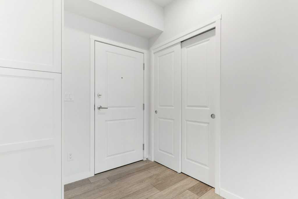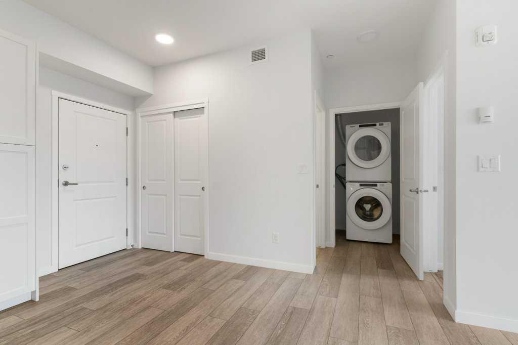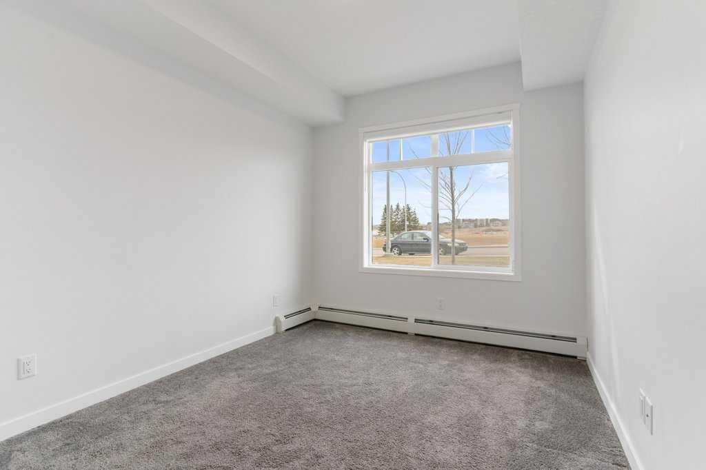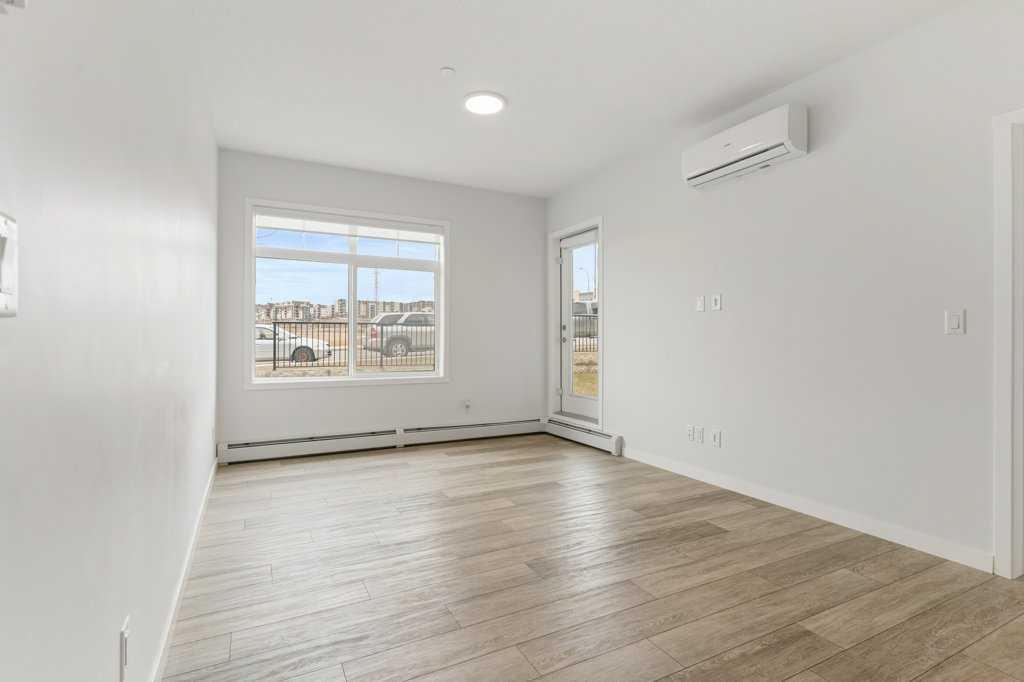 Gorgeous unit with AIR-CONDITIONING in popular Sage Hill. This open concept main floor 2 bedroom, 2 bathroom condo located in the well maintained "Mark 101" by Shane Home is walking distance to shopping and amenities! Features include 9 foot ceilings, Luxury Vinyl Plank flooring and quartz counter tops throughout , vinyl windows with sleek blinds, and in-suite laundry. In the well appointed kitchen , there are white cabinets, quartz countertops, modern white subway tile backsplash and stainless steel appliances. Opening on to the kitchen is the family room with large windows and a patio door leading to your private spacious main floor patio, with gas line roughed in. The primary bedroom has an en-suite bathroom and large walk-thru closet. The second bedroom is across the hall from the stylish 4 piece bathroom, and both are located on the other side of the family room from the primary allowing for maximum privacy. This unit also includes 1 titled underground parking stall, a storage locker, and there is secure bike storage available in the parkade. Condo fees are affordable and include heat/water/sewer. Located just steps away from public transit, shopping, restaurants, and many other amenities, this is a GREAT place to live OR a wonderful investment property.