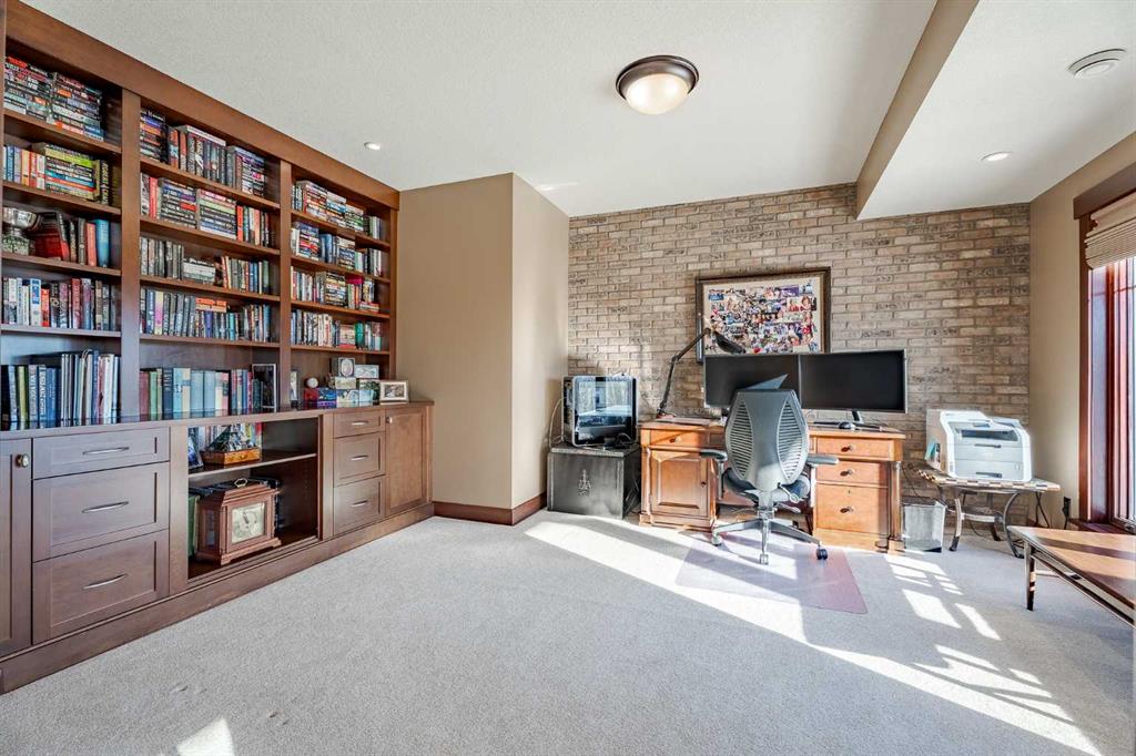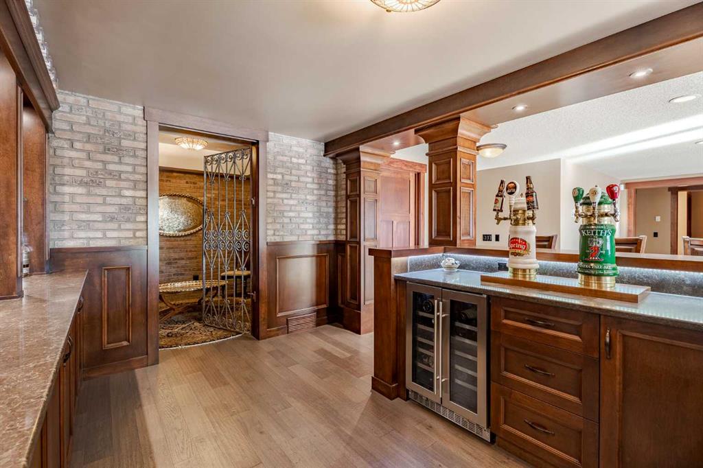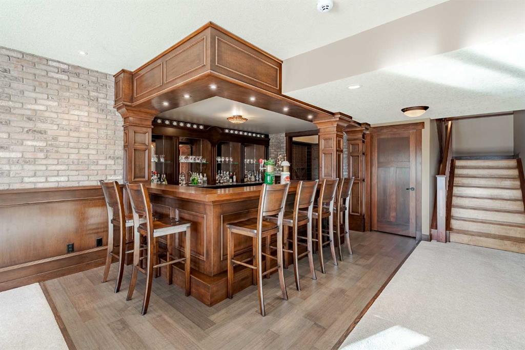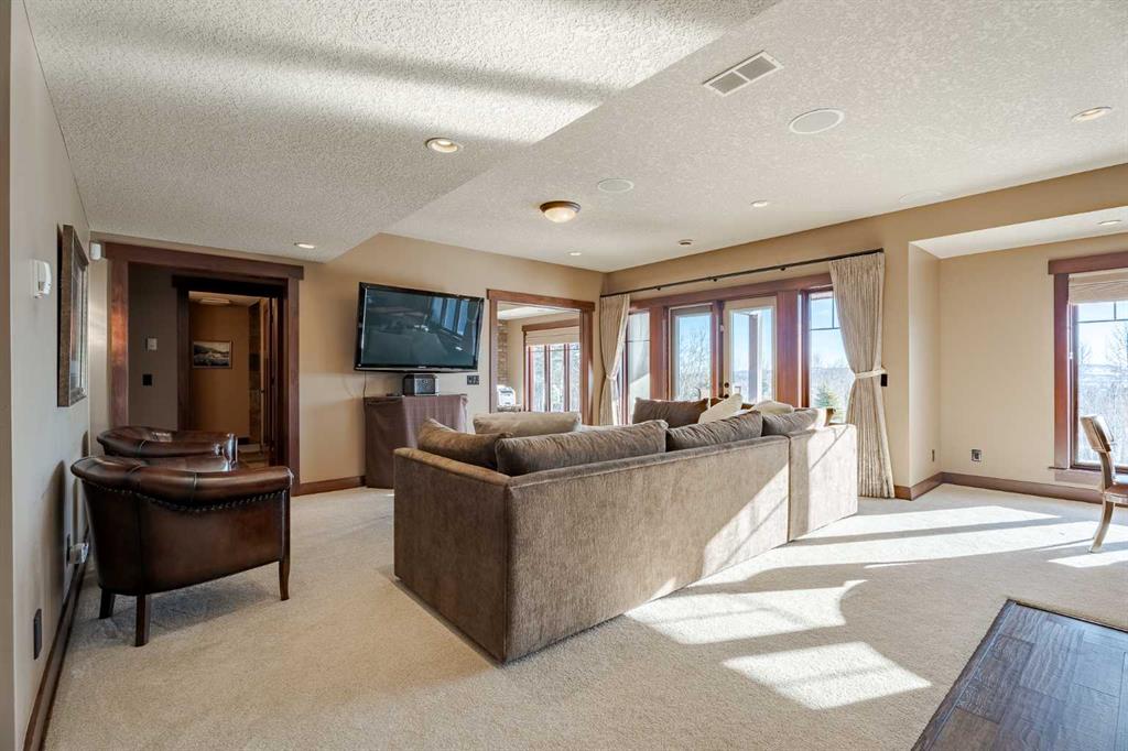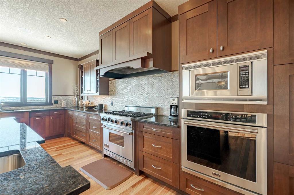 Perched on one of the most coveted lots in Hawks Landing, this extraordinary custom-built estate captures breathtaking, unobstructed views of the rolling valley and endless eastern Foothills. With nearly 4,800 sq. ft. of fully finished living space, this executive residence is a masterclass in timeless design, refined craftsmanship, and elevated country luxury. The striking exterior blends natural stone, cedar shakes and timber detailing setting a tone of understated elegance from the moment you arrive. Inside, a grand open-concept main floor unfolds beneath soaring ceilings and walls of windows that frame the landscape like living artwork. Brazilian teak hardwood flooring, rich stained wood casings, baseboards, and solid interior doors add warmth and sophistication throughout the main and upper levels. The heart of the home is the stunning gourmet kitchen and great room, anchored by a stone-faced fireplace and flowing seamlessly into a spectacular dining space overlooking the Foothills. Designed for both daily living and memorable entertaining, the kitchen features a high-end gas range, granite countertops, an oversized island with seating, and abundant prep space—perfect for intimate family meals or hosting on a grand scale. Upstairs, four beautifully appointed bedrooms each enjoy private balcony access, offering serene outdoor moments and panoramic views. The primary suite is a true retreat, complete with a double-sided fireplace, sitting area, and a spa-inspired ensuite featuring a walk-in steam shower, deep soaker tub, and a custom walk-in closet with built-ins worthy of the most discerning wardrobe. The fully developed walkout lower level is an entertainer’s dream, featuring in-floor heating, a spacious family room, fifth bedroom or den, four-piece bath, a custom-built English pub, and wine room—ideal for evenings spent hosting friends or unwinding in style. Step outside to the expansive east-facing deck, where sunrise views stretch endlessly across the Foothills. Extensive, professionally designed landscaping transforms the backyard into a private paradise, equally suited for quiet reflection or lively gatherings. A triple attached garage completes this exceptional offering. This is luxury living immersed in nature, just 10 minutes from Calgary, with quick access to Bragg Creek, Canmore, Banff and the mountains offering endless outdoor recreation. Thoughtfully designed sight lines from the grand entrance immediately draw your eye to the view beyond—an architectural reminder that this home was built to celebrate its remarkable setting. A rare opportunity to own a custom executive masterpiece in one of Priddis Green’s most prestigious communities—where sophistication, serenity, and panoramic beauty converge.