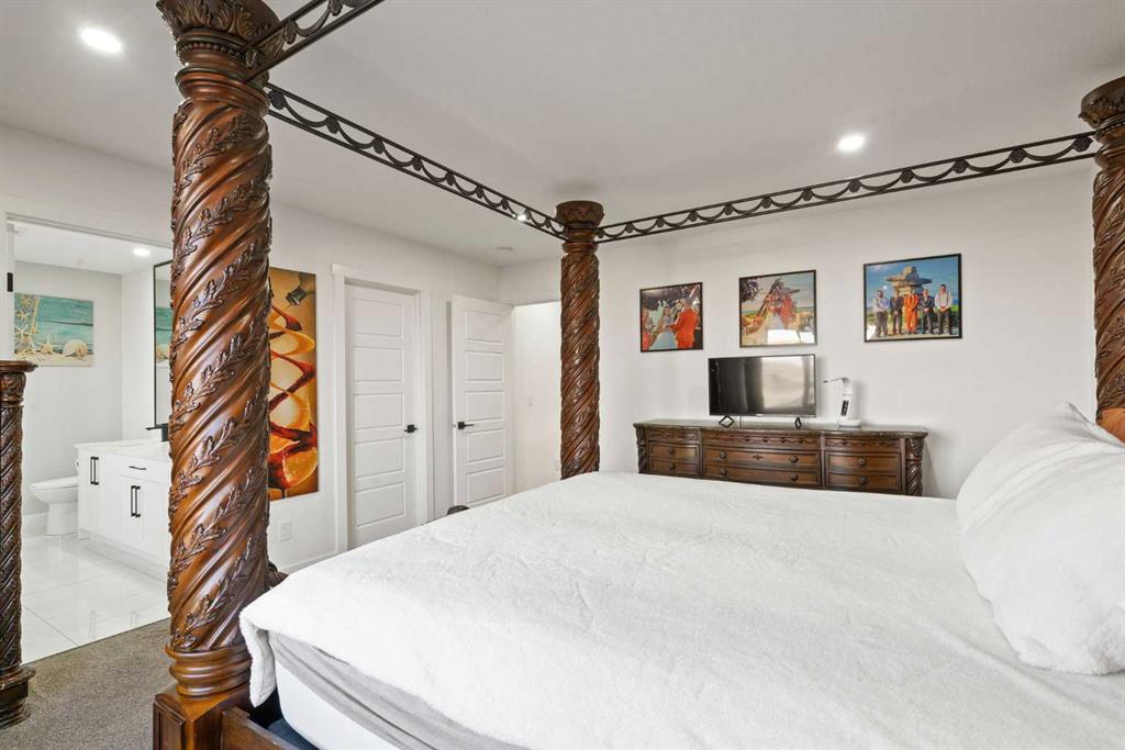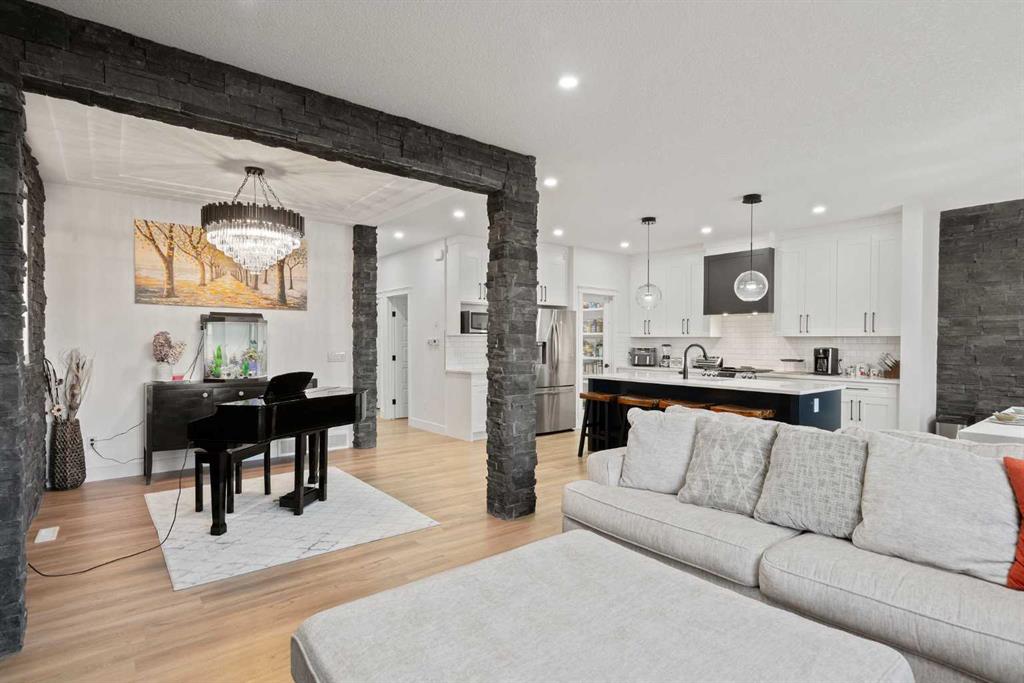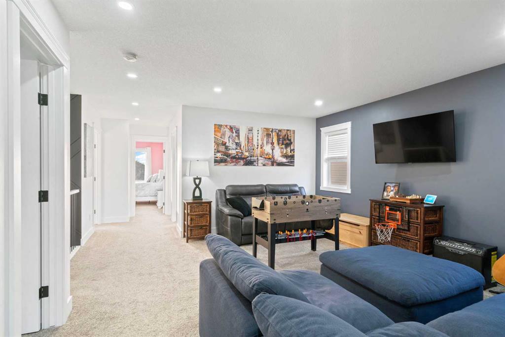 This beautifully designed two-storey home delivers the perfect mix of contemporary style and everyday practicality. The open-concept main level is bright and welcoming, anchored by a crisp white kitchen with quartz countertops, streamlined cabinetry, and a large island that’s perfect for casual dining or entertaining. The adjoining eating nook seamlessly connects to the cozy living area, highlighted by a sleek electric fireplace. A versatile main floor flex room offers endless possibilities — ideal as a home office, formal dining space, or playroom. Upstairs, you’ll find four generously sized bedrooms, including a spacious primary retreat featuring a walk-in closet and a spa-inspired 5-piece ensuite. A central bonus room creates the perfect hangout for movie nights or quiet relaxation, while the upper-level laundry room with sink adds everyday convenience. The fully developed basement offers even more flexibility with a separate entrance and an illegal suite complete with its own kitchen, bedroom, 3-piece bath, laundry, and large recreation area — ideal for extended family, guests, or a home-based business setup. Outside, the sunny backyard is ready for summer enjoyment with a deck and swimming pool — and the pool can remain for the new owners to enjoy. With its thoughtful layout, income potential, and modern finishes throughout, this home offers exceptional value and versatility.