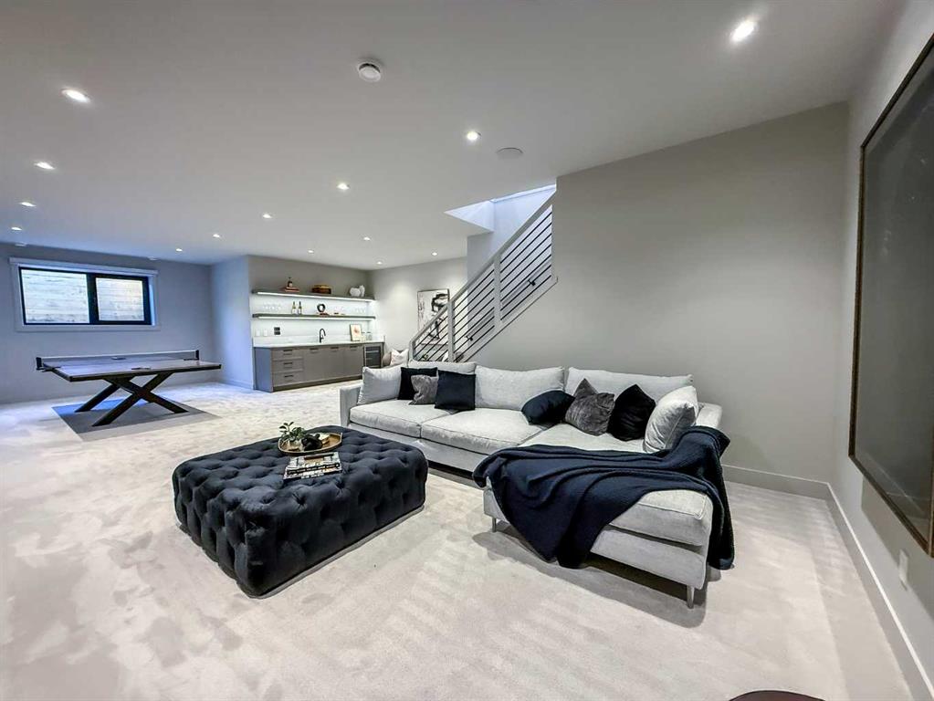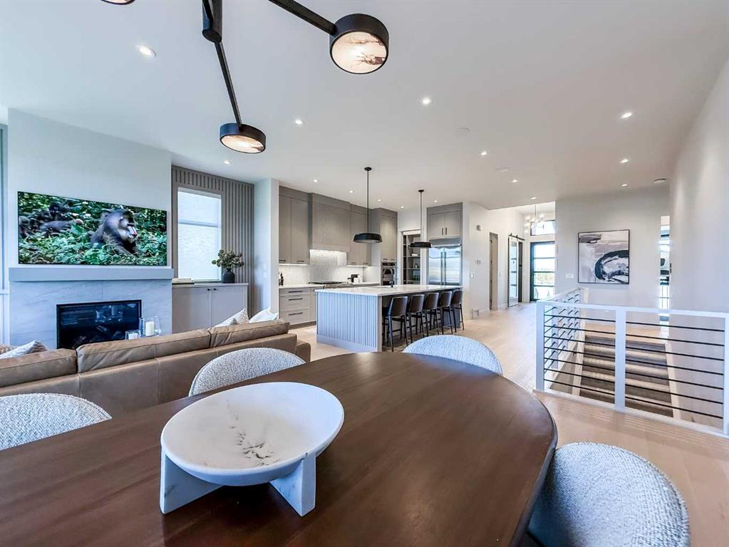 Nestled in the heart of Serenity at Heritage Pointe, this luxurious 3 bedroom, 2.5 bath townhome with the Sydney floorplan has been carefully crafted by RareBuilt Homes & offers over 3200 sq ft of exceptional living space. The open concept main floor impresses with engineered wide plank hardwood, custom tile detailing, 10’ ceilings, and a spacious great room with large sliding doors that open to a covered rear deck and private fenced yard. The chef inspired kitchen is equipped with a full KitchenAid appliance package, including a six burner gas cooktop, custom hood fan, refrigerator/freezer, dishwasher, and built in oven with convection microwave. A generous island, ample storage, and thoughtful layout make this kitchen ideal for both everyday living and entertaining. A stylish home office with beam detailing adds both character and functionality. The primary suite provides a serene retreat, complete with a spa inspired 5 piece ensuite featuring heated floors, a freestanding soaker tub, an oversized shower, and a custom walk in closet. The fully finished basement extends the living space with a large recreation room, two additional bedrooms, a full bath, and a roughed-in theatre room that can be modified to wherever your imagination takes you. Additional highlights include a 3 stop elevator, tilt and turn triple glazed windows, 6 standard solar panels, a high efficiency furnace, heat pump, air conditioning, and radiant in floor heating—ensuring year round comfort and energy efficiency. Parking is effortless with a fully finished and painted oversized double attached garage complete with epoxy flooring, aggregate driveway and EV charger readiness. Enjoy the freedom of full landscape maintenance and snow removal plus close proximity to Heritage Pointe Golf Club, LaunchPad Golf at Heritage Pointe & easy access to Calgary or Okotoks via highway 2 or 2A.