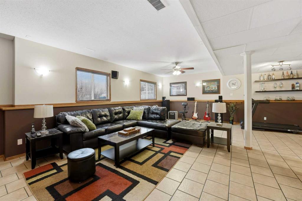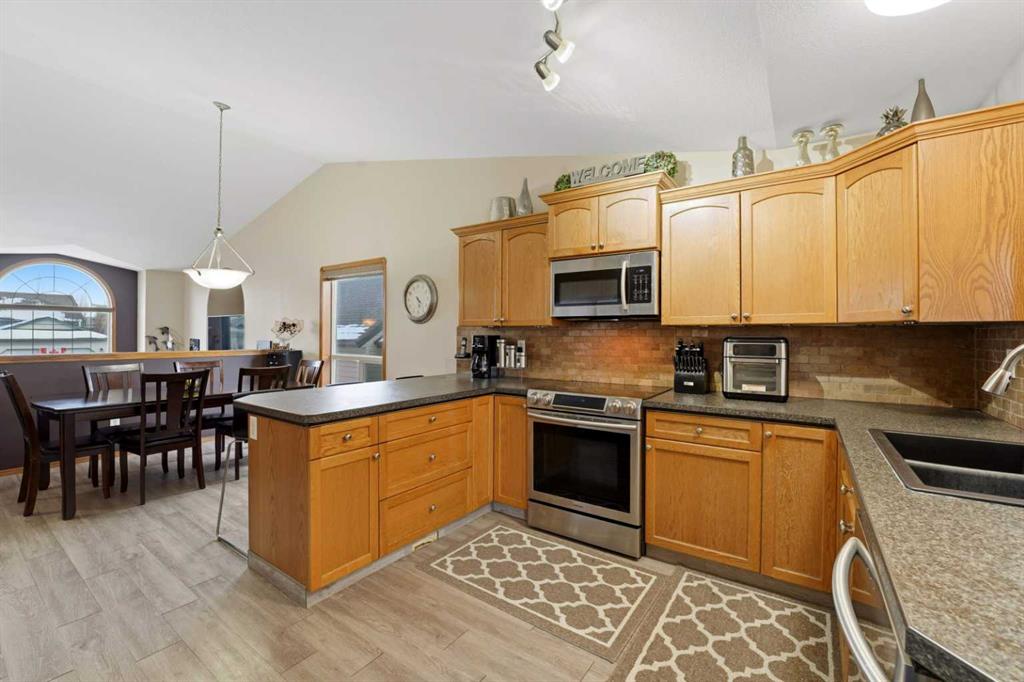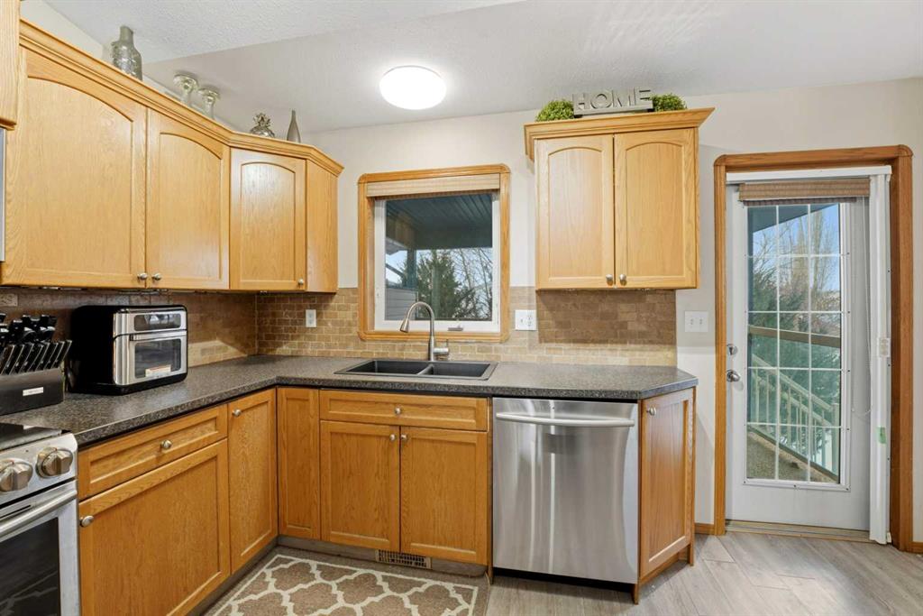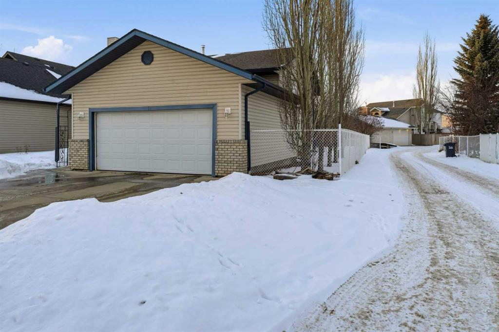 Beautifully maintained bi-level backing onto the greenbelt in desirable Lancaster—where convenience meets value. This 4-bedroom home is a fantastic find, ideally located close to schools, Collicutt Recreation Centre, shopping, and more. The main floor welcomes you with a spacious living room featuring a large picture window that fills the space with natural light. A few steps up leads to the heart of the home, where the open-concept kitchen and dining area connect seamlessly. The kitchen offers oak cabinetry, generous counter space, an eating bar, pantry, oversized fridge and freezer, ample storage cupboards, and a central vacuum kick sweep. A garden door off the kitchen opens to a covered deck surrounded with trees and a fully fenced backyard—perfect for relaxing or entertaining. The yard has capacity to add RV parking with a fence/gate change. The main floor also includes three bedrooms and two full bathrooms. The primary bedroom features a walk-in closet plus additional wall-mounted IKEA storage and a 3-piece ensuite. Downstairs, you’ll find a large family room complete with built-in media and speakers (included), an additional bedroom, a full bathroom, and a laundry room with sink/cabinetry and plenty of storage and an extra fridge. Recent updates and features include a brand-new high-efficiency furnace (2025) under warranty with Romaniuk, shingles replaced in 2016, heated attached garage, central air conditioning, irrigation system, and a raised garden bed with power. A well-cared-for home in a prime location—this one truly checks all the boxes.