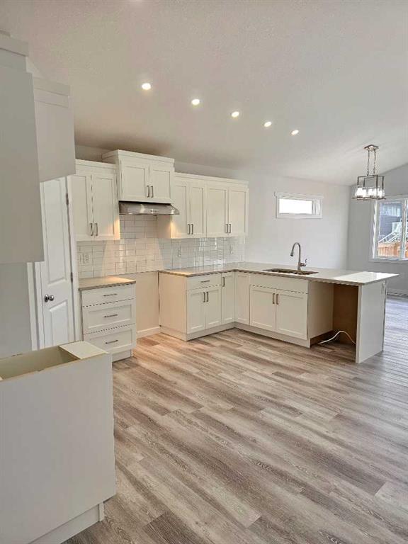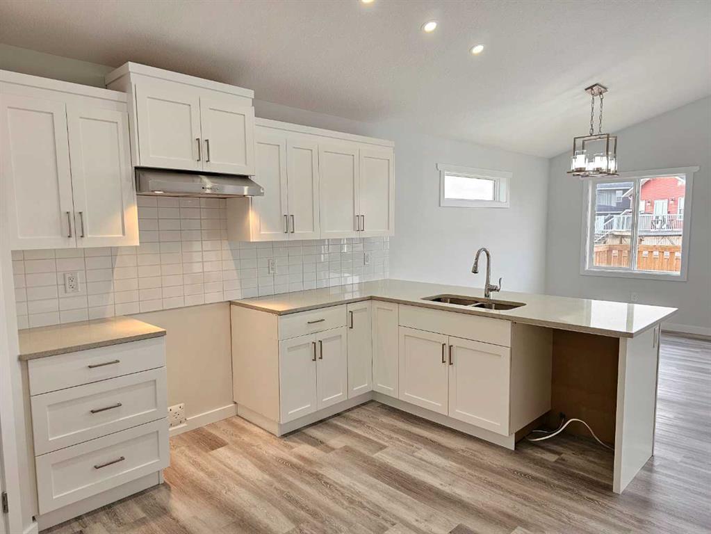 Welcome to this incredible modified bi-level home in Wembley that is currently under construction ! Boasting an attached garage , this property features a spacious backyard. The lot is wide enough that it can have an RV parking pad in the front. As you step inside, you'll be greeted by a lovely entryway complete with ample storage space. The main level offers a fantastic kitchen area featuring stunning cabinetrys, a generous dining area, and a comfortable family room. The upper level is home to a generously sized master bedroom with a walk-in closet and an ensuite. The basement level is open and waiting for your creative touch to develop into additional living space. Located just a short 12-minute drive west of Grande Prairie, this home is situated in a fantastic area, offering numerous advantages. Come see for yourself what this remarkable property has to offer! Please note inside pictures are sample photos of the same plan.