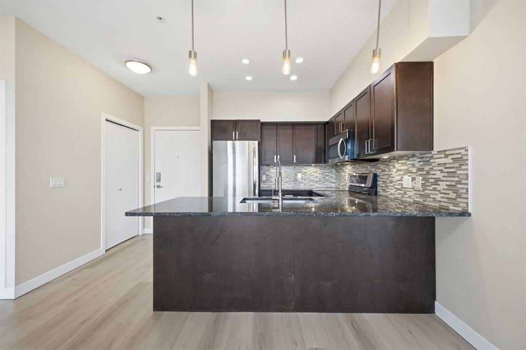 **End unit** Ground-floor end unit in the desirable community of Highland Park offering 2 bedrooms, 2 bathrooms, plus a den. This well-designed home features dual entrances with direct access from the heated parkade and a private patio entrance. The kitchen includes granite countertops, stainless steel appliances, a double deep sink, and pantry, opening to a spacious living area. The primary bedroom offers a walk-through closet and 5-piece ensuite with double vanity, soaker tub, and separate shower. Includes assigned parking stall located directly in front of the unit and storage locker. Conveniently located near parks, shopping, and transit.