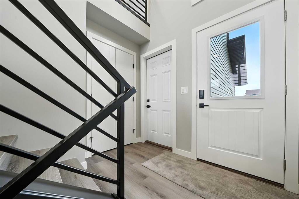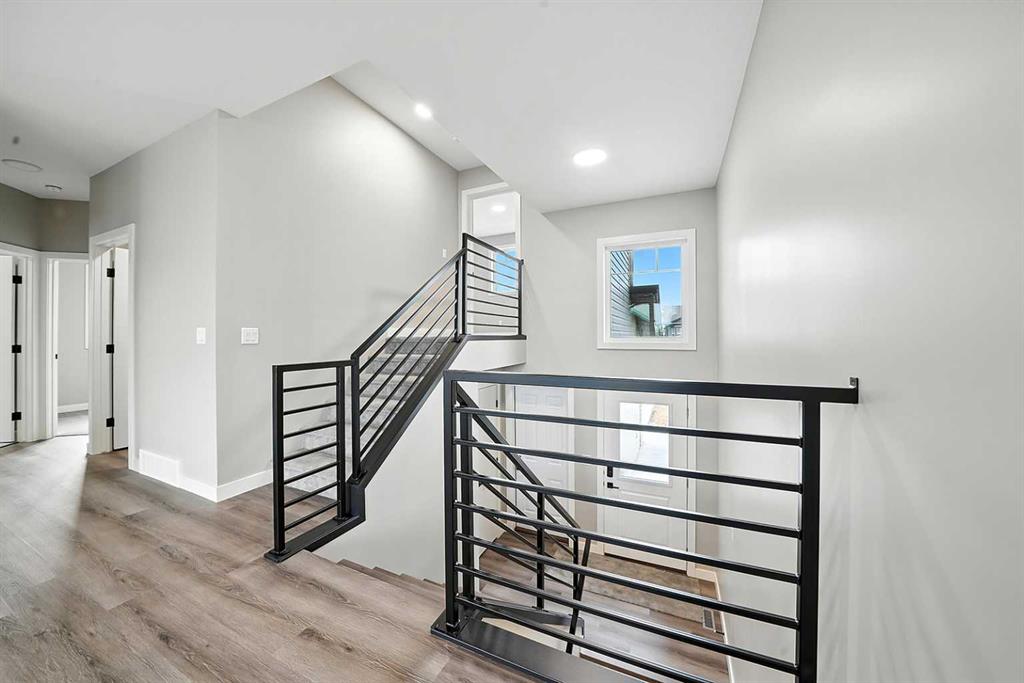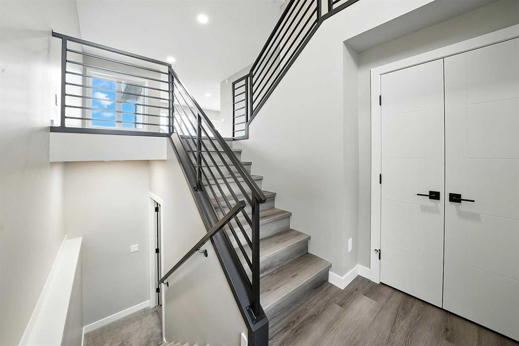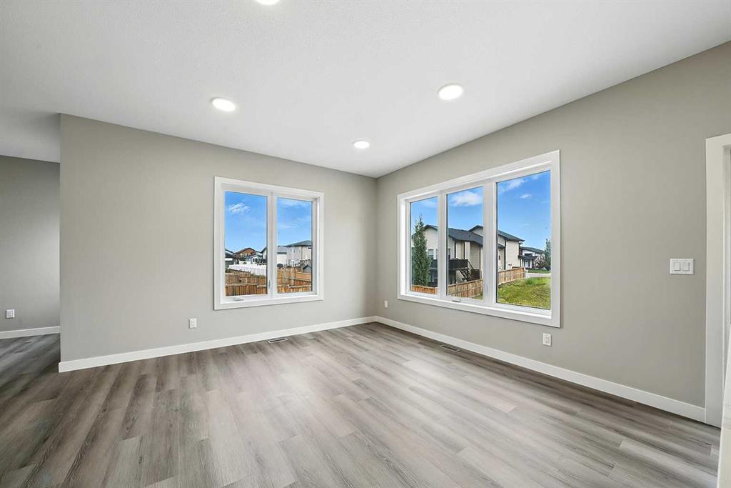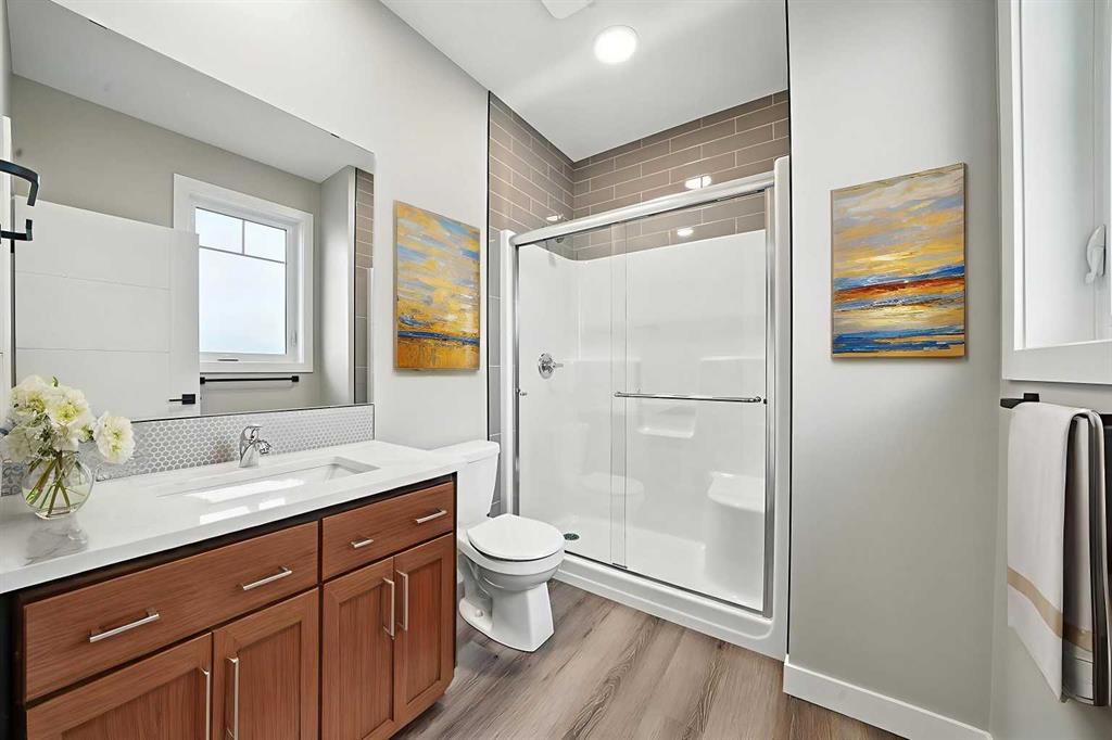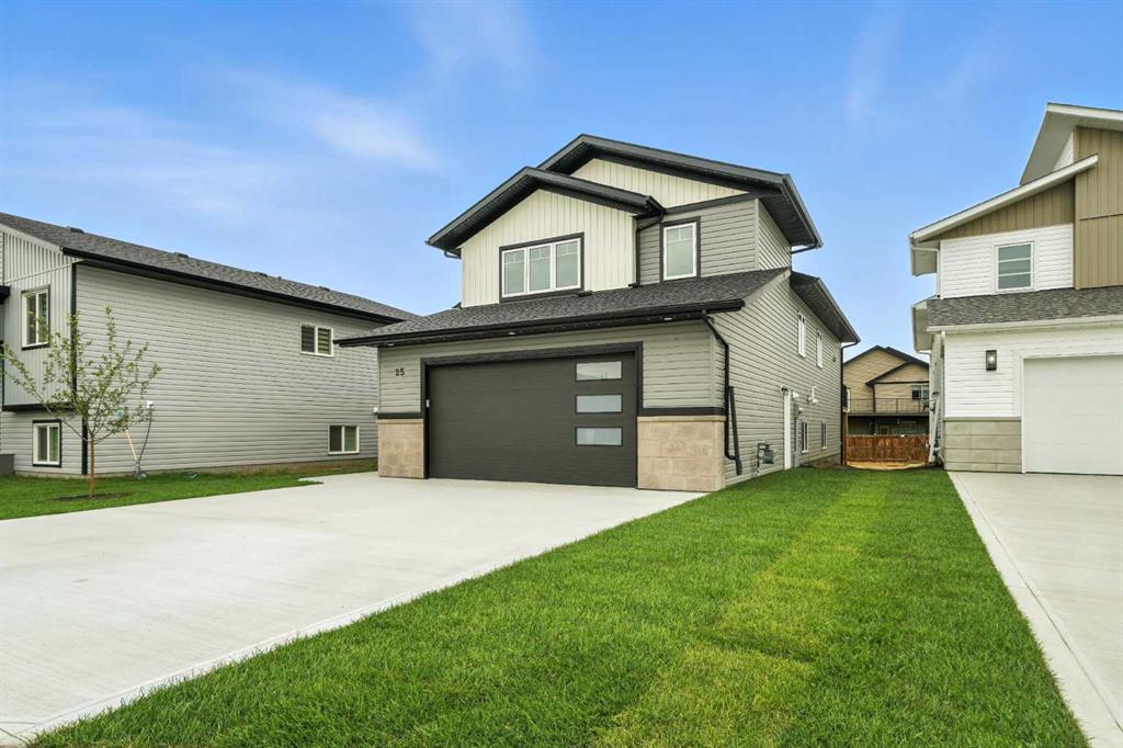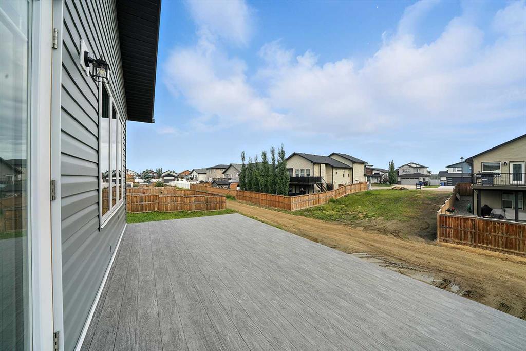 Welcome to this standout home in the sought-after McKay Ranch community—just a short walk to a playground, park, and beautiful walking paths. With a thoughtfully designed layout and modern finishes, this modified bi-level is perfect for families of all sizes. The kitchen is filled with natural light and offers dark cabinetry, a stylish 4X8 horizontal tile backsplash, and quartz countertops. You’ll appreciate the large pantry and the included stainless appliances. From here, step out onto the spacious full-width deck with metal railing and dura deck—perfect for entertaining and soaking up the sun. The main level includes two bedrooms (one with a walk-in closet), a well-appointed 4-piece bathroom, and a convenient laundry room. Durable luxury vinyl plank flooring ties the open-concept living space together beautifully. Upstairs, the large primary bedroom offers a peaceful retreat, complete with a walk-in closet and a private 3-piece ensuite. The walkout basement is unfinished and ready for your personal touch, with access to a cement patio and backyard. An oversized 25' x 24' garage completes the package, offering excellent storage and parking. You'll love the Gem light permanent light package on this home. The front yard is landscaped, side and back yard is black dirt to grade. Move-in ready and ideally located—this home is a must-see!