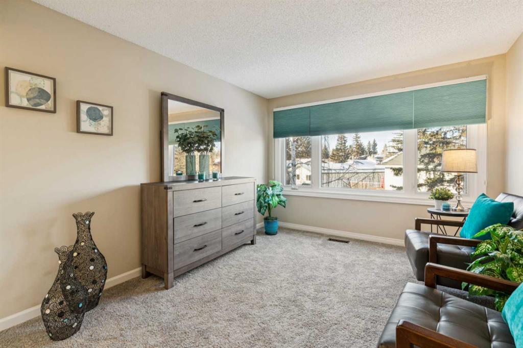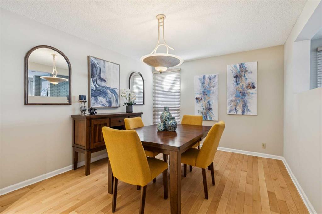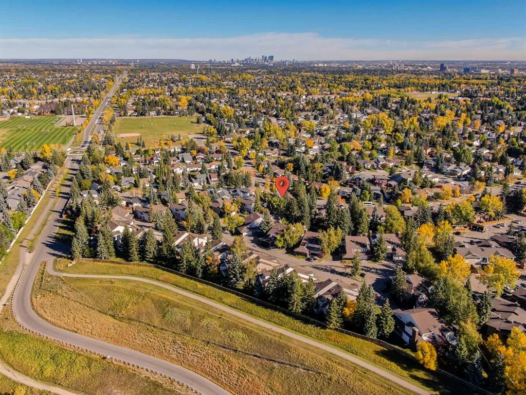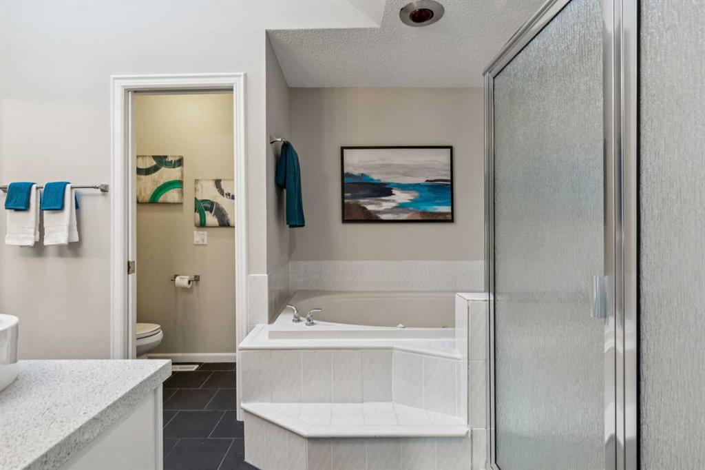 STYLISH, TASTEFULLY RENOVATED TOWNHOME offering 3 BEDROOMS and a MAIN FLOOR DEN plus FINISHED BASEMENT and ATTACHED DOUBLE GARAGE with private driveway that will hold another two cars. AMAZING LOCATION! This complex backs to FISH CREEK PARK and offers easy access to the parks and pathways for outdoor adventures. MANY UPGRADES! New upstairs windows (2022), new furnace (2025), and 2 new hot water tanks (2025), water softener (2025), central air (2022), main floor bath upgraded to a 3-piece, new oven and stovetop in kitchen (2022). Huge primary bedroom has a 5-piece ensuite (jetted tub, separate shower, skylight). This is a home that you really must see!