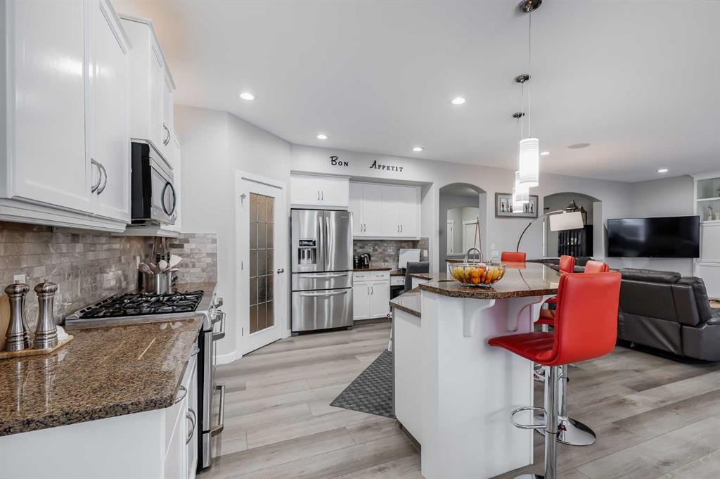 Welcome to one of the best family homes in Lake Chaparral. Tucked away on a quiet bay with only six other homes, this property offers privacy, space, and an incredible lifestyle — all just a short walk to the lake. This is a true six-bedroom home, offering over 2,700 square feet above grade, plus a fully developed basement with more than 1,200 additional square feet. Even better, the major upgrades are already done. Over the past three years, the home has been updated with new luxury vinyl plank flooring, new carpet in the bedrooms, two new furnaces, a new hot water tank, a new roof, a new garage door opener, and quartz countertops in all bathrooms — Front and Back GEMSTONE LIGHTING, making this a move-in-ready home you can feel confident in. As you enter, you’re welcomed by a large foyer with a double-door closet and plenty of room for family and guests. Just off the entry is a flexible open office or formal dining space, perfect for working from home or entertaining. The home opens into a massive great room, anchored by a gas fireplace with a custom cabinet surround and built-in shelving — the perfect place to gather. The wide-open kitchen is designed for real life, featuring white cabinetry, granite countertops, stainless steel appliances, deep pot and pan drawers, and a huge island with a raised eating bar that comfortably seats five. With 9-foot ceilings on both the main floor and basement and large windows throughout, the home feels bright and open. Upstairs are four spacious bedrooms, including an oversized primary retreat. The spa-inspired ensuite features quartz countertops, dual undermount sinks in a 9-foot vanity, a corner soaker tub with frosted windows, and a 6-foot glass-enclosed shower with dual shower heads and four body sprays. A large walk-in closet completes the space. The additional bedrooms are generously sized, including one with its own walk-in closet, and the main bathroom offers a double vanity, ideal for busy mornings. The fully developed basement includes two more bedrooms and a huge recreation area, all with 9-foot ceilings, making it feel like a true extension of the home. Outside, the pie-shaped lot really stands out. The beautifully landscaped yard features an 18 by 18 deck, brick patio, hot tub, large shed, mature gardens, and 19 full-sized trees. An irrigation system services both the front and backyard, keeping everything lush and low maintenance. And the location is hard to beat. Lake Chaparral offers year-round lake access with swimming, skating, fishing, and community events. You’re just a short walk to the lake and steps from Save-On-Foods, Shoppers Drug Mart, restaurants, gas stations, liquor store, and a car wash. Six bedrooms. Quiet bay location. Major upgrades complete. Lake living at its best. Owners are both licensed Real Estate Agents in the Province of Alberta.