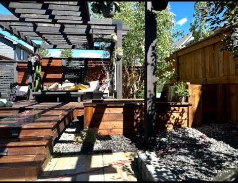 OPEN HOUSE SUNDAY FEB 1st 1:00 - 3:00pm. Just steps from the Bow River pathway, this thoughtfully upgraded home offers a rare combination of everyday functionality with some standout design upgrades. The oversized double attached garage has been extensively customized with a 15’ ceiling, radiant heating, and professional-grade finishing—making it a true showpiece. Quality craftsmanship, purposeful upgrades, and exceptional outdoor living come together seamlessly here. The main floor offers a warm and inviting living room highlighted by a gas-tiled fireplace, feature walls, custom shelving, and a charming custom barn door at the rear entry adding character and versatility. The kitchen is both stylish and practical, featuring granite countertops, a large island with built-in garbage and recycling pull-outs, espresso cabinetry with glass doors, stainless steel appliances, and a gas cooktop. A custom pantry door and electrical in the pantry complete the space. Upstairs, the spacious primary bedroom offers a relaxing retreat with a large soaker tub, his-and-hers sinks and vanity spaces, and his-and-hers walk-in closets. Two additional generous-sized bedrooms, a full four-piece bathroom, and convenient upper-floor laundry complete the upper level. The unfinished basement is ready for your design ideas and includes a bathroom rough-in and provides excellent potential for future customization. Additional highlights include a rough-in for air conditioning and a recently serviced tankless hot water heater. The oversized double attached garage is truly a standout feature, measuring approximately 20’ x 23’ with an impressive 15’ ceiling height. Professionally finished, this space has been extensively customized with an epoxy-coated floor, hot and cold water with additional shut-off valves conveniently located in the basement, and frost-free taps in the garage for added peace of mind. Heating is provided by a Schwank 40,000 BTU radiant tube heater with thermostat ($10k value), complete with a permitted fresh air intake. A dedicated 220V outlet on its own breaker has also been installed, offering excellent flexibility for future use. Tire hangers mounted beside the wall-mounted black cabinet are included. The backyard has been thoughtfully designed to create a private and inviting outdoor retreat, framed by mature trees for natural privacy. A custom cedar deck anchors the space, complemented by a covered pergola featuring substantial Douglas fir beams and a solid fir structure. Carefully planned landscaping and a structured drainage system enhance both the beauty and long-term functionality of the yard and a structured drainage system designed to prevent water issues. Additional features include reflective tint on all windows to help keep the home cool in summer months, and a transferable business permits. Riviera is the upscale community you will love to call home, just steps from the gorgeous Bow River and a short drive to Calgary and the Rocky Mountains.