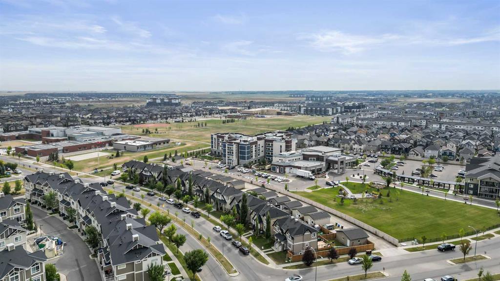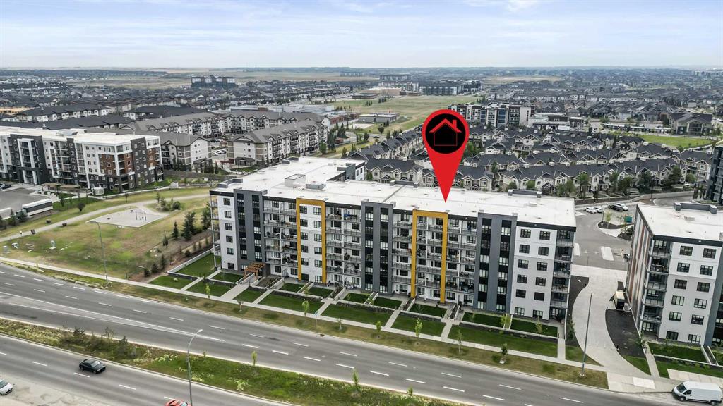 Welcome to this stunning ground floor condo in the heart of Skyview Ranch, offering a luxury modern interior and private outdoor living. Boasting 11 ft ceilings, this bright and airy home features 2 bedrooms, 2 full bathrooms, and a flexible den/home office, perfect for work, nursery, or as a creative space. The open concept kitchen features sleek quartz countertops, stainless steel appliances, white subway tile backsplash and a spacious island (with breakfast bar seating) for casual meals or entertaining friends. The living and dining areas are cozy and inviting, leading to the private backyard (27'4" x 19'7") with aggregate concrete patio (29'7" x 10'2”), a rare find for condo living and sure to be a favourite with children, pets, or friends at summer gatherings. The primary bedroom offers a walk-through closet and elegant 4pc ensuite (with dual sink quartz vanity & glass shower), while the second bedroom has easy access to the main 4pc bath. Enjoy the everyday convenience of in-suite laundry, ample storage and a titled parking stall in the secure, underground parkade for year round comfort. Located just steps from parks, schools, shops and transit, with quick access to Stoney Trail and Deerfoot, this condo is an ideal choice for first time buyers, professionals or downsizers seeking modern living with unbeatable outdoor space. Don’t miss out and book your showing today!