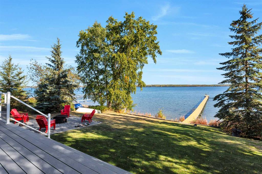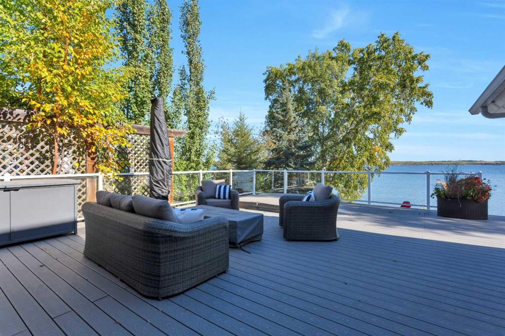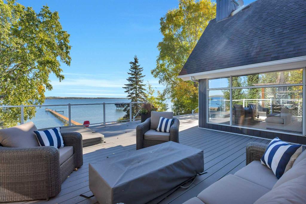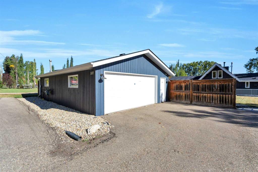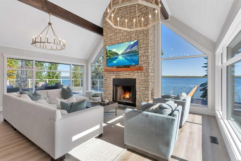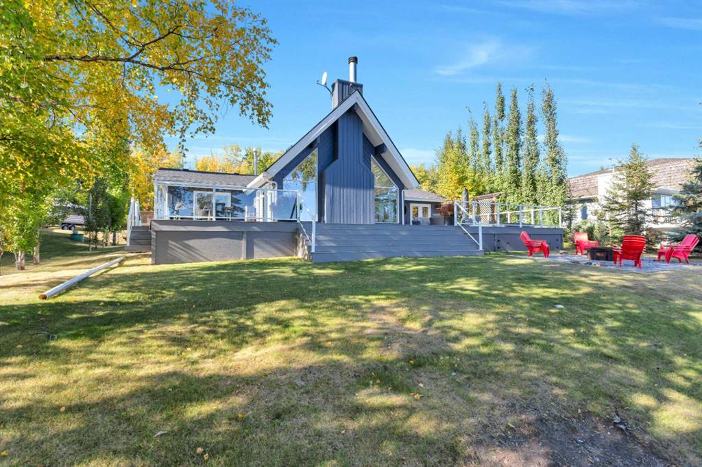 Looking for a true five bedroom lakefront bungalow in Norglenwold with meaningful upgrades? It exists. Welcome to 187 Grand Avenue. This home offers 2,300 square feet of pristine Sylvan Lake living, featuring a fully renovated main level, 75 feet of level waterfront, and unobstructed lake views. Inside, painted cedar vaulted ceilings, a full height stone fireplace, and floor to ceiling windows set the tone. The open concept main level has been completely transformed with a redesigned kitchen, new appliances, new flooring, trim, baseboards, doors, windows, lighting, and fresh finishes throughout. Outside, the oversized lakeside deck is built on screw piles with composite decking, dual gas lines for a BBQ and fire table, a sunken hot tub area, and easy access down to the retaining wall and the lake. The fully fenced front yard is ideal for kids or pets, while the heated 25 by 23 garage handles toys, tools, and lake gear with ease. The basement is protected by three sump pumps, each with battery backup and alarm systems. Two air conditioners and new furnaces installed in 2024 provide efficient year round comfort. Skate in the winter, boat in the summer, and enjoy everything in between. This is four season lake living, done right.