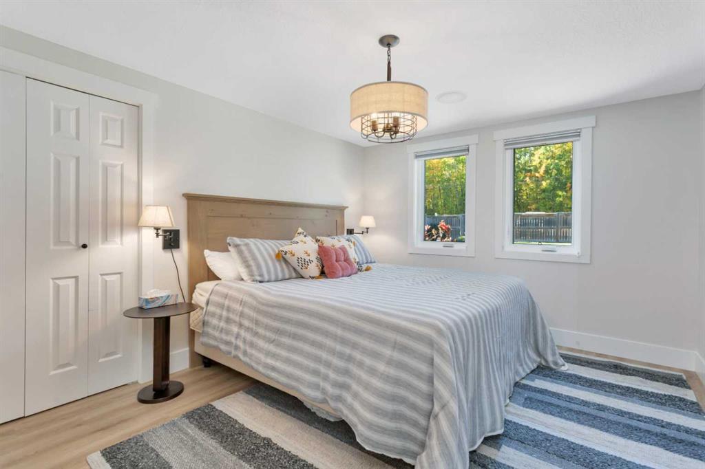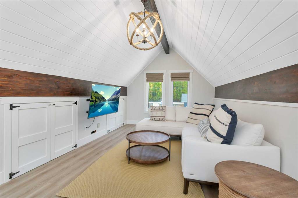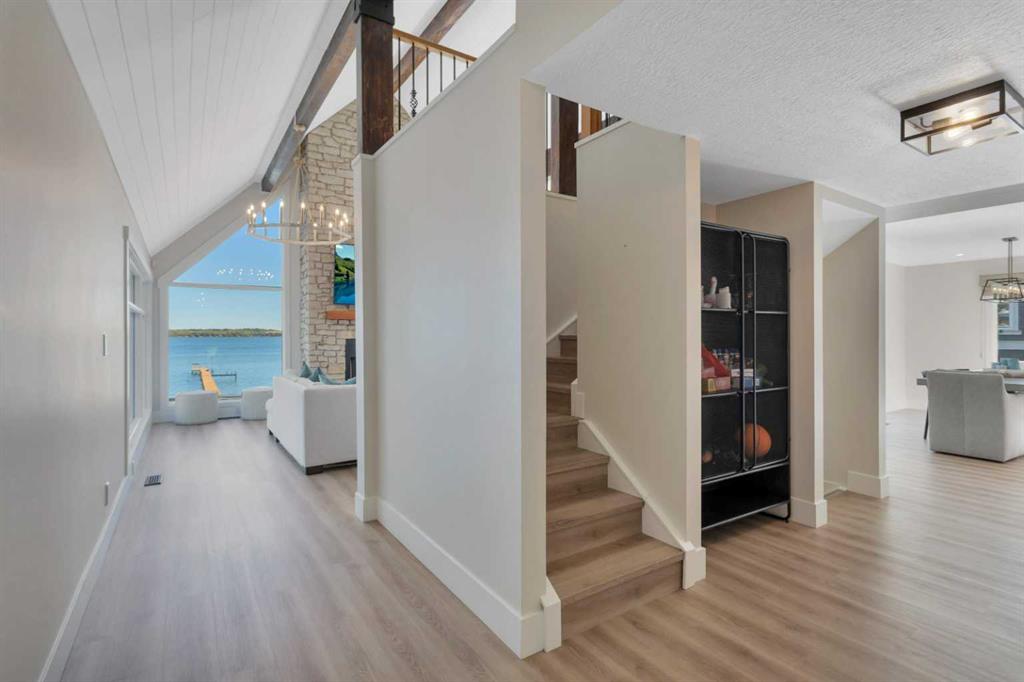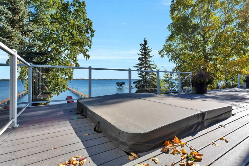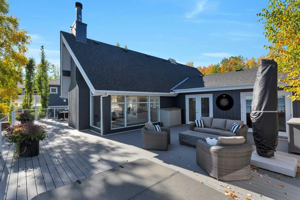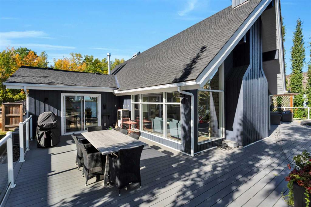 Looking for a true five bedroom lakefront bungalow in Norglenwold with meaningful upgrades? It exists. Welcome to 187 Grand Avenue. This home offers 2,300 square feet of pristine Sylvan Lake living, featuring a fully renovated main level, 75 feet of level waterfront, and unobstructed lake views. Inside, painted cedar vaulted ceilings, a full height stone fireplace, and floor to ceiling windows set the tone. The open concept main level has been completely transformed with a redesigned kitchen, new appliances, new flooring, trim, baseboards, doors, windows, lighting, and fresh finishes throughout. Outside, the oversized lakeside deck is built on screw piles with composite decking, dual gas lines for a BBQ and fire table, a sunken hot tub area, and easy access down to the retaining wall and the lake. The fully fenced front yard is ideal for kids or pets, while the heated 25 by 23 garage handles toys, tools, and lake gear with ease. The basement is protected by three sump pumps, each with battery backup and alarm systems. Two air conditioners and new furnaces installed in 2024 provide efficient year round comfort. Skate in the winter, boat in the summer, and enjoy everything in between. This is four season lake living, done right.