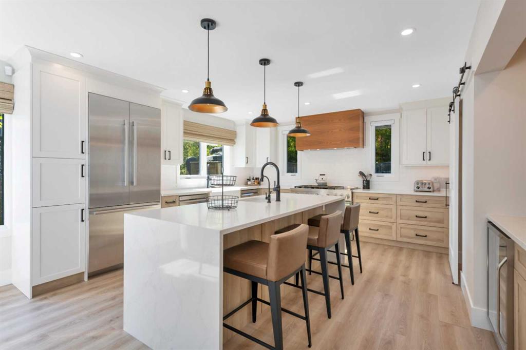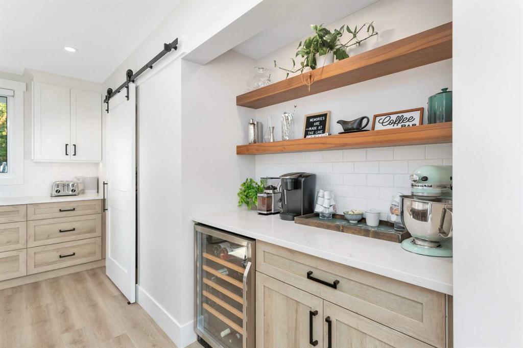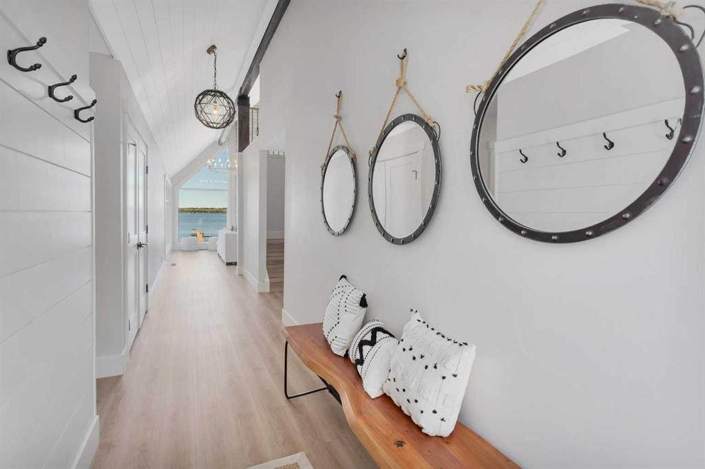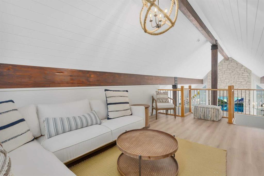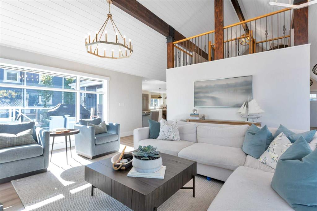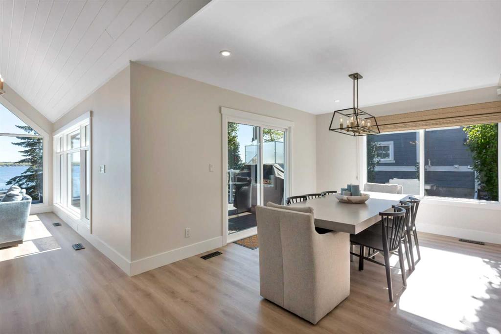 Looking for a true five bedroom lakefront bungalow in Norglenwold with meaningful upgrades? It exists. Welcome to 187 Grand Avenue. This home offers 2,300 square feet of pristine Sylvan Lake living, featuring a fully renovated main level, 75 feet of level waterfront, and unobstructed lake views. Inside, painted cedar vaulted ceilings, a full height stone fireplace, and floor to ceiling windows set the tone. The open concept main level has been completely transformed with a redesigned kitchen, new appliances, new flooring, trim, baseboards, doors, windows, lighting, and fresh finishes throughout. Outside, the oversized lakeside deck is built on screw piles with composite decking, dual gas lines for a BBQ and fire table, a sunken hot tub area, and easy access down to the retaining wall and the lake. The fully fenced front yard is ideal for kids or pets, while the heated 25 by 23 garage handles toys, tools, and lake gear with ease. The basement is protected by three sump pumps, each with battery backup and alarm systems. Two air conditioners and new furnaces installed in 2024 provide efficient year round comfort. Skate in the winter, boat in the summer, and enjoy everything in between. This is four season lake living, done right.