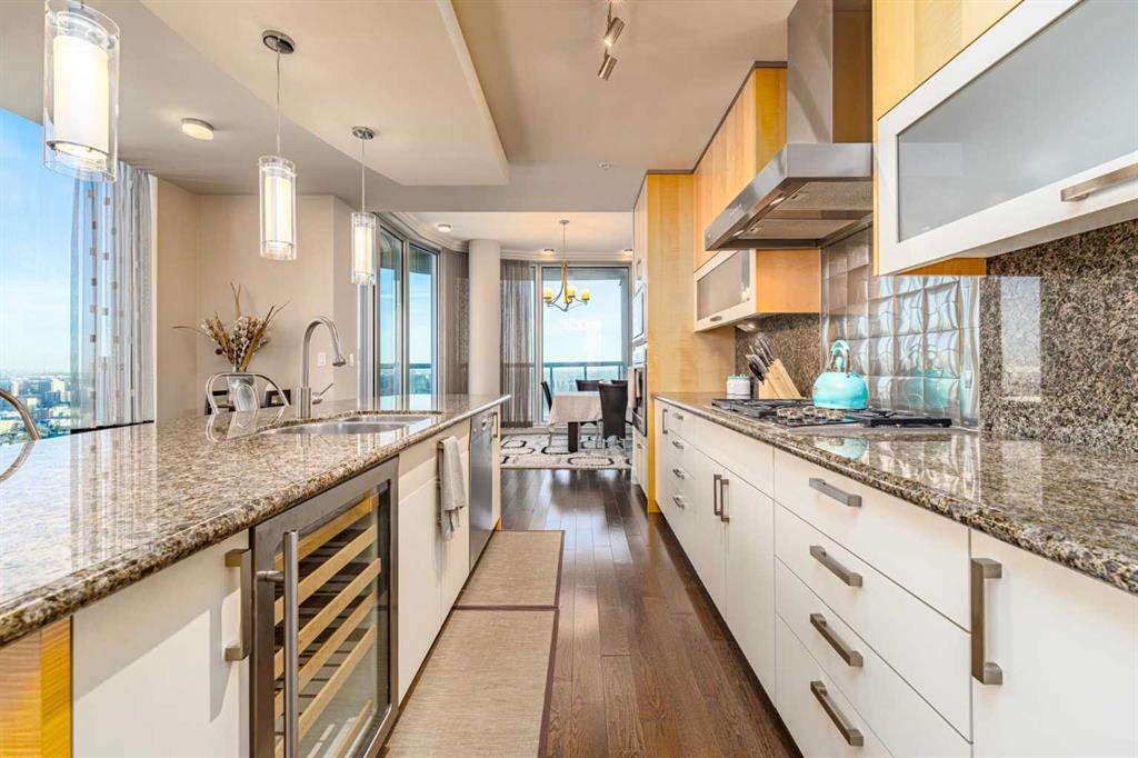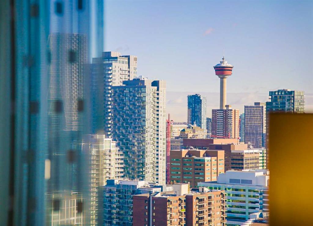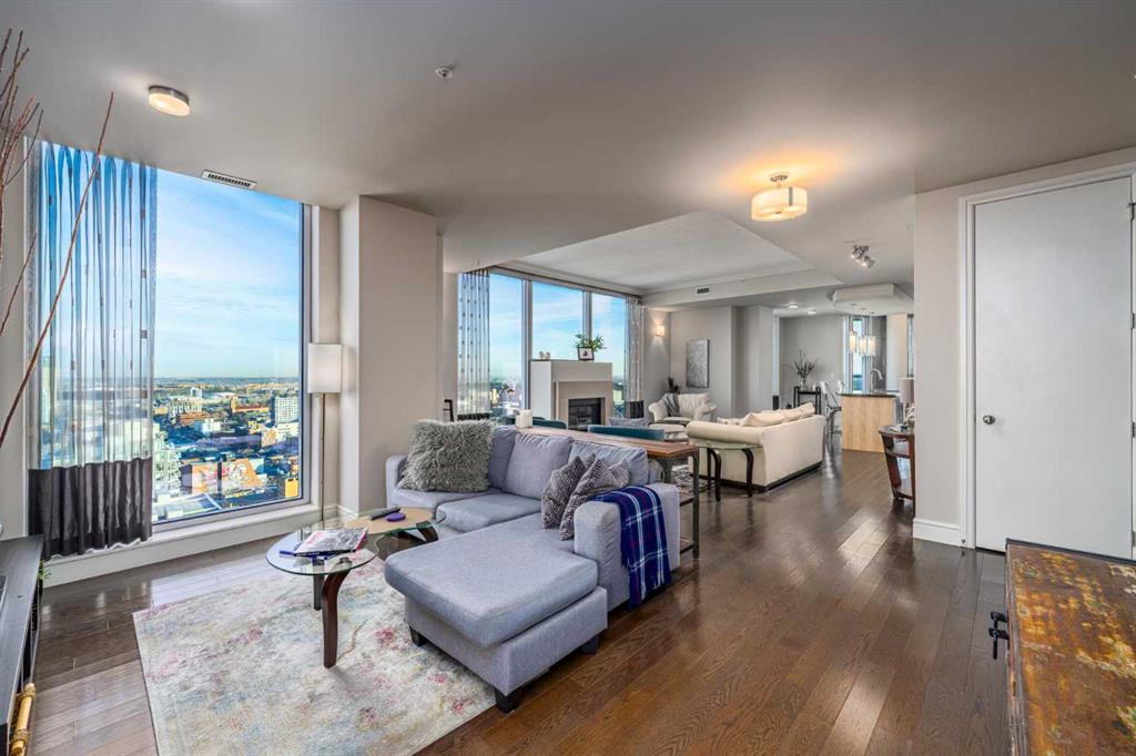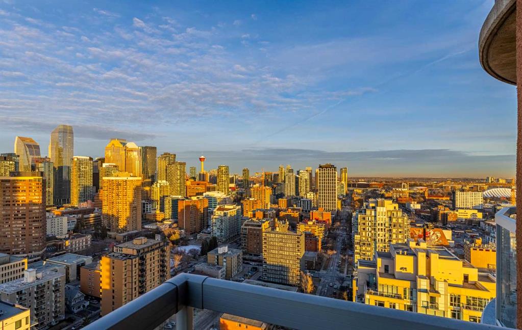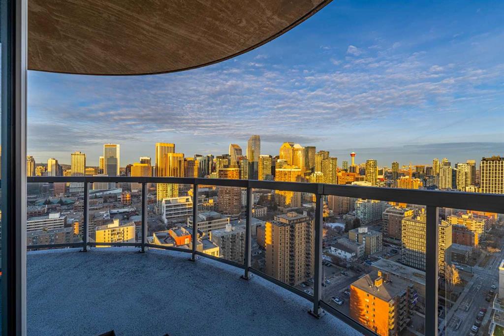 A rare opportunity in the Beltline offering unobstructed, 180-degree sweeping views from four private balconies. Privately positioned on a floor shared with only one other residence, this 3-bedroom, 2,300 sq. ft. home combines expansive living spaces with exceptional quality. The primary suite exceeds an impressive 200 sq ft, featuring a luxurious five-piece ensuite and a generous walk-in closet. Two additional bedrooms, two full bathrooms, a powder room, and a den provide flexibility and comfort for family or guests. Constructed with quadruple-glazed windows, 8-inch concrete floors, and double-layered drywall, the home offers superior soundproofing, privacy, and comfort. Interior highlights include a gas fireplace framed by stunning city views, dual heating zones with air conditioning, Hunter Douglas automated window coverings, and a gourmet open-concept kitchen equipped with Wolf and Bosch appliances. The four private balconies provide uninterrupted views spanning from east to west, capturing both the downtown skyline and the mountains. Enjoy city events such as the Stampede fireworks right from your balcony. Included are two titled side-by-side P1 parking stalls conveniently located near the elevator, featuring upgraded EV chargers. Two storage lockers are also included, and the unit can be offered fully furnished. The Montana offers full concierge service and a level of construction and privacy that continues to set it apart. Ideally located in the heart of the Beltline—home to Calgary’s finest dining, culture, and entertainment—this residence defines elevated urban living.