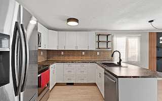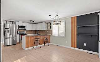 OPEN HOUSE SUNDAY FEBRUARY 1, 12- 2 pm….STOP... WAIT A MINUTE !!!! This 953 sf 2 bed 1 bath mobile home is just waiting for you ! Everything upgraded in 2023. Starting with the exterior, new siding, insulation, Tyvek wrapped, windows (newer), front exterior door, membrane roof, eavetrough (all 2023), new shed around the back for storage, all plumbing lines have been changed to PEX. A few steps up to the covered deck has a dedicated entrance direct into the mud room as well as front entry into the home. Fully drywalled throughout with new insulation to keep down the heating costs, this unit was relevelled 2023. Furnace (2020), Rinaai Tankless Hot Water (2020), laminate flooring-DMX Advanced vapor barrier underlay throughout (mold, moisture & sound barrier) will increase floor temperature by 12 degrees. New lighting throughout with ceiling fan in living room & all new baseboards & casing. The kitchen is truly a Chef’s kitchen with upgraded appliances and tons of cabinets & counterspace. A separate side pantry is beside the hall closet. Stainless fridge-plumbed for water & ice (2023 with extended warranty), dishwasher (2023), microwave, vented outside (2023), convection stove (2020), high end laminate counters, Blanco composite double sink w/ Pfister faucet & shaker style cabinets. Eating bar seats 2 comfortably (have seat… look around !). Living room has big windows letting in the natural light, window coverings (2023), wall unit TV/stand, dining area & front hall closet. The primary bedroom is big & can easily accommodate a king size bed, walk in closet area, custom wall panels, cheater door to the main bathroom, the 5pce bathroom has soaker tub (2023), vanity with double sinks (2023), new toilet (2023) and water resistant floor laminate tiles. The second bedroom is huge and can easily fit 2 beds & has wall to wall closet. The mud room is large & has same flooring & underlay as the rest of home, peg board for keeping everything neat & tidy & still tons of room for storage. Side by side front parking fits a truck and good sized SUV. Large deck, big yard (size rivals some new communities) & around the corner in back is shed for all your storage needs. RV parking on site for a nominal fee. The Lot Lease Rate of $1100.00/ month includes water, sewer, snow & garbage removal, common area maintenance and onsite management & recycling. Mountview Mobile home park has easy access to Easthills shopping, theatres, COSTCO are close by & as are bus routes to downtown. Schools & amenities all close by with Elliston Park across the street for walking, biking & big play park for kids, also short distance away from Stoney Trail.. START PACKING !!