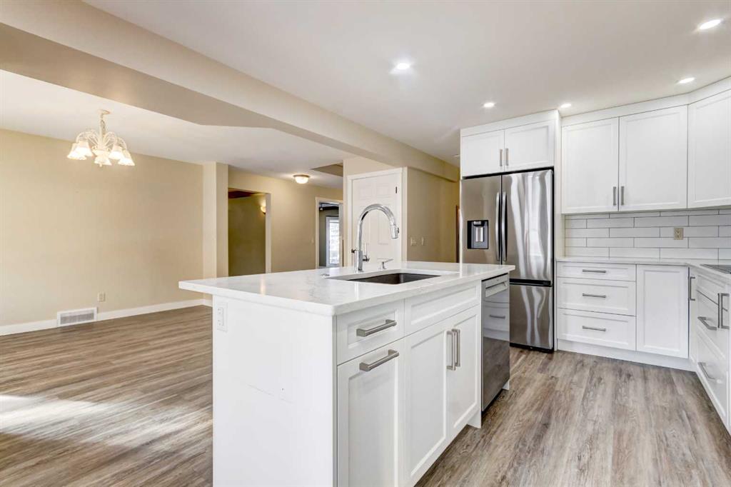 INCREDIBLE TRANSFORMATION! Welcome to this beautifully fully renovated family home including the basement(2023-2025) with over 3000 sqfeet living area located in the mature and highly desirable community of Hawkwood. This rare offering features 5 bedrooms + Den, including 4 spacious bedrooms on the upper level, making it ideal for growing families. From the moment you enter, you’ll appreciate the modern, sleek interior and thoughtful design. The main floor offers a large living room with bay window, custom built-ins, and a coffered ceiling perfect for a home office or study. The stunning white kitchen showcases a center island, quartz countertops, flat-finished ceilings, and stainless steel appliances, flowing seamlessly into the bright dining area. The cozy family room is anchored by a wood-burning fireplace with gas log lighter and enhanced by recessed mood lighting. A powder room and main-floor laundry complete this level. Upstairs, you’ll find four generously sized bedrooms, including the primary suite with a 4-piece ensuite and walk-in closet, plus an additional 4-piece bathroom. The fully finished basement (2024) offers exceptional flexibility, featuring a reconfigured layout, new bedroom, new kitchen, new bathroom, new flooring, and fresh paint, with its own separate entrance. The basement is currently an illegal suite with excellent potential for conversion. According to the contractor, most of the work required for a Legal Secondary Suite has been completed, with only an electrical panel upgrade remaining prior to City registration (buyers to verify with municipal authorities). This space is ideal for extended family living or future rental income. Additional upgrades include a new air conditioning system (2025), newer windows (approx. 12 years), two high-efficiency furnaces with drip humidifiers (approx. 5 years), a hot water tank(2025), and a brand-new covered deck. The front-drive, double heated garage is heated and equipped with 220V power and hot/cold water. Situated on a quiet crescent, just minutes from schools, shopping, and amenities, this newly modernized home offers outstanding value in an ideal family-friendly location. Don’t miss this exceptional opportunity—book your private showing today!
