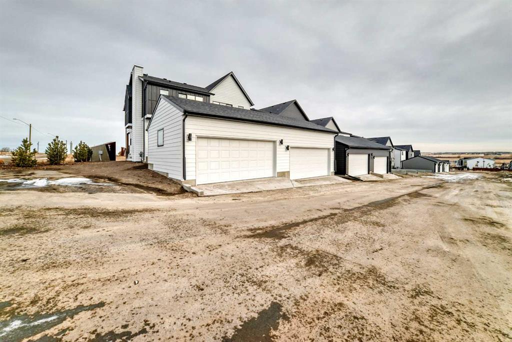 Welcome to this thoughtfully designed 1,487 sq ft home in Sawgrass Park, Airdrie’s newest NW community where everyday convenience meets the beauty of nature. Built by Hopewell Residential, one of Alberta’s most trusted and award-winning builders, this home combines quality construction, energy efficiency, and family-friendly living. From the moment you arrive, the HARDIE BOARD SIDING sets the tone with its modern curb appeal and reputation for long-lasting durability. Step inside to a bright and open main floor featuring luxury vinyl plank flooring, knockdown ceiling texture, and a well-planned layout designed for both entertaining and everyday comfort. The upgraded kitchen is as functional as it is beautiful, with QUARTZ countertops, stainless steel appliances, a CHIMNEY HOOD FAN, built-in microwave, and a second bank of drawers for added storage. Whether you're preparing weeknight meals or hosting friends, this space delivers. Upstairs, you’ll find three generously sized bedrooms, including a private primary retreat with a walk-in closet and 4-piece ensuite. A functional office space, laundry closet and full main bathroom are thoughtful touches creating a warm, welcoming vibe. Need more space in the future? The basement is ready for your vision—complete with 9’ foundation walls, a separate side entrance, and plumbing rough-in, offering exciting potential for a legal suite (subject to City approval), media room, or personalized family space. Step outside to your 20' x 20' DETACHED GARAGE on your large corner lot yard. Sawgrass Park is all about connection—featuring a 5-acre central greenspace, beautiful wetlands, and plans for schools and recreation facilities that make it the ideal place to plant roots. Whether you’re heading into Calgary or exploring the growing amenities in Airdrie, everything is within easy reach. This is your opportunity to own a brand-new home with timeless features in a vibrant, growing community. Schedule your private showing today!
