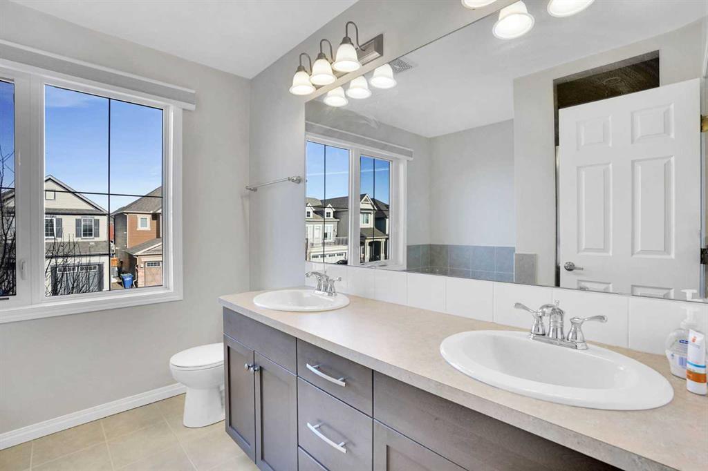 Welcome to this beautifully maintained single-family home with a front-attached garage, perfectly positioned to capture sunny southern exposure and non-obstructive pond views. The south-facing backyard is filled with natural light all day long—an ideal setting for relaxing evenings, outdoor dining, and enjoying stunning sunsets and it creates a peaceful extension of your living space—rarely found and highly sought after. Pride of ownership is evident throughout, with the home kept in like-new, move-in-ready condition. The thoughtfully designed main floor offers 9-foot ceiling, excellent flexibility, featuring a private office that can easily serve as a fourth bedroom, along with a convenient half bathroom—perfect for guests, remote work, or multi-generational living. Upstairs, you’ll find three generously sized bedrooms and two full bathrooms, including a comfortable primary retreat designed for both privacy and everyday comfort. The layout is practical and family-friendly, with plenty of natural light flowing through large windows on both levels. Whether you’re enjoying your morning coffee or unwinding after a long day, the setting offers a quiet escape without sacrificing convenience. Located in a family-oriented community Windsong, this home is just minutes from schools, playgrounds, walking paths, and shopping centres. Enjoy quick access to CrossIron Mills Mall, nearby amenities, and major roadways, with Downtown Calgary only a 25-minute drive away—making daily commuting or weekend outings effortless. This is an outstanding opportunity to own a well-kept home with a premium backyard view, functional layout, and excellent location. Don’t miss your chance—Check out the 3D Virtual Tour link or book your private showing today!