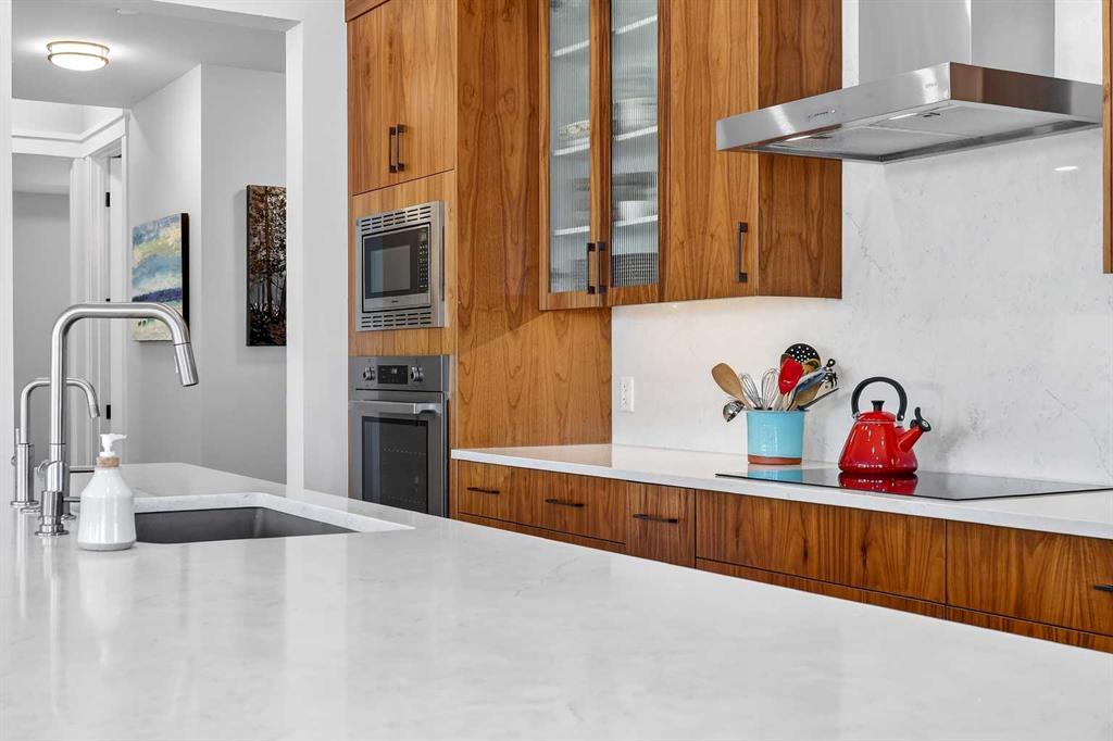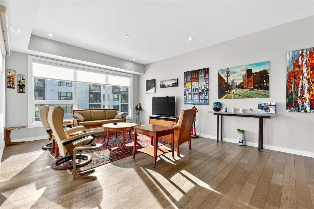 LUXURY PENTHOUSE LIVING WITH UNRIVALED INNER CITY LIVING IN UNIVERSITY DISTRICT – 21 LEBEL CRESCENT NW. Indulge in the pinnacle of upscale living in this exceptional penthouse condo in the prestigious Cabella development—located in Calgary’s premier NW lifestyle community. Offering a rare blend of expansive living space and refined elegance, this 1686+ sq ft residence is designed for those who value quality, privacy, and breathtaking surroundings. From the moment you step into the spacious foyer, you're greeted by abundant natural light streaming through numerous large south-facing windows, creating a warm, welcoming atmosphere. Adjacent to the entrance, and adorned with a double closet, a private powder room, you'll be swept into the heart of the condo, which features two distinct yet flowing living and dining areas, each anchored by a central island in the kitchen—ideal for entertaining or unwinding. An outdoor 12' x 8' covered balcony provides seasonal escapes, offering panoramic east/south views of University District, Nose Hill, the city skyline, and inner courtyard—an ever-changing natural masterpiece at your doorstep. Inside, the bespoke gourmet kitchen features white quartz countertops, upgraded cabinetry, and generous storage. In the private quarters, you'll find a beautifully appointed in-suite laundry room with matching cabinetry and surfaces, blending utility with style. The first primary bedroom suite is a sanctuary, featuring a five-piece spa-style ensuite, a large custom walk-in closet, and oversized windows. Adjacent to this suite, a cozy second bedroom is an ideal space for reading, working, or hobbies. The third bedroom is equally luxurious, with generous proportions, large windows, and quick access to the third bathroom. This four-piece ensuite features a tiled soaker tub and a vanity with ample storage, providing convenience and comfort. This home also includes a private, attached double garage with additional storage space — a rare and valuable feature in condo living. Additionally, it's conveniently located just a few steps from your elevator. Life at Capella is defined by lifestyle and community. Capella, developed by Brookfield Residential in Calgary’s University District, offers a "lock-and-leave" luxury lifestyle that blends high-end, maintenance-free living with immediate access to a vibrant, walkable urban environment. As part of a 200-acre master-planned community, Capella specifically appeals to a diverse demographic—including downsizers, professionals, and academics—seeking to balance comfort with convenience. Set against the backdrop of the University of Calgary, this extraordinary penthouse combines space, privacy, and refined living in an unbeatable location. Don’t miss your chance to experience luxury living at its finest—schedule your private tour today.