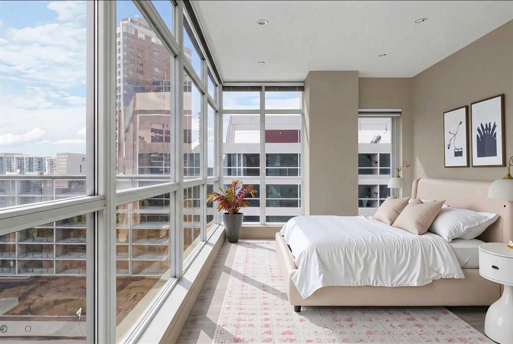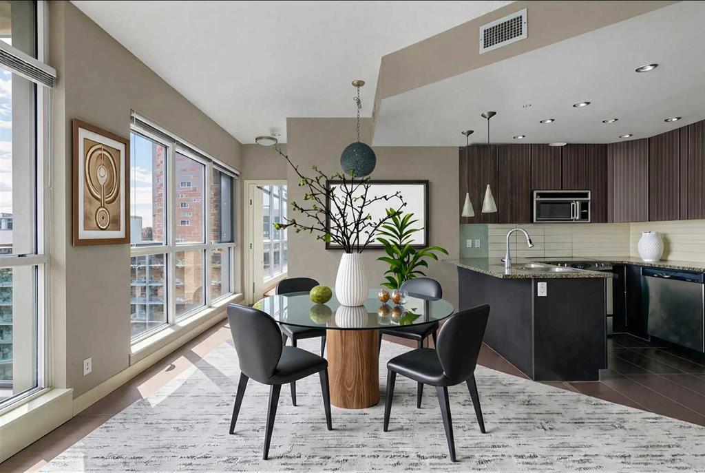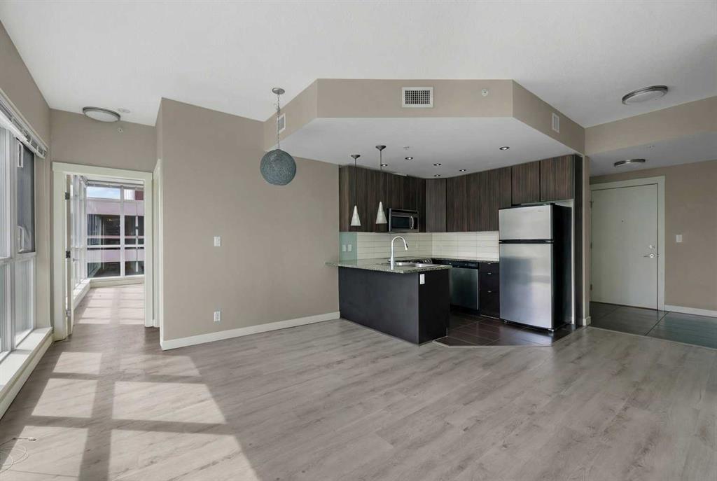 Welcome to the Xenex on 12th! Amazing location, close to shopping, dining, entertainment, as well as the trendy shops &restaurants of 17th Avenue. This contemporary floor plan is warm & inviting. It is tastefully decorated in modern colours and fixtures. This apartment features 9ft ceilings, granite countertops, stainless steel appliances, luxury vinyl plank hardwood flooring, tile flooring, floor-to-ceiling windows, and air conditioning! There is a good-sized bedroom, an open kitchen, a formal dining area, a spacious bright living room with patio doors leading to the covered balcony, a 4-piece bathroom, in-suite laundry with ample storage space, and an underground heated parking stall. This home exhibits sweeping views of downtown!! This concrete building is well maintained and secure with concierge service. There is also underground parking for your visitors and a car wash bay! A truly exceptional home! Move-In ready! Don't miss this opportunity to own this beautiful home!