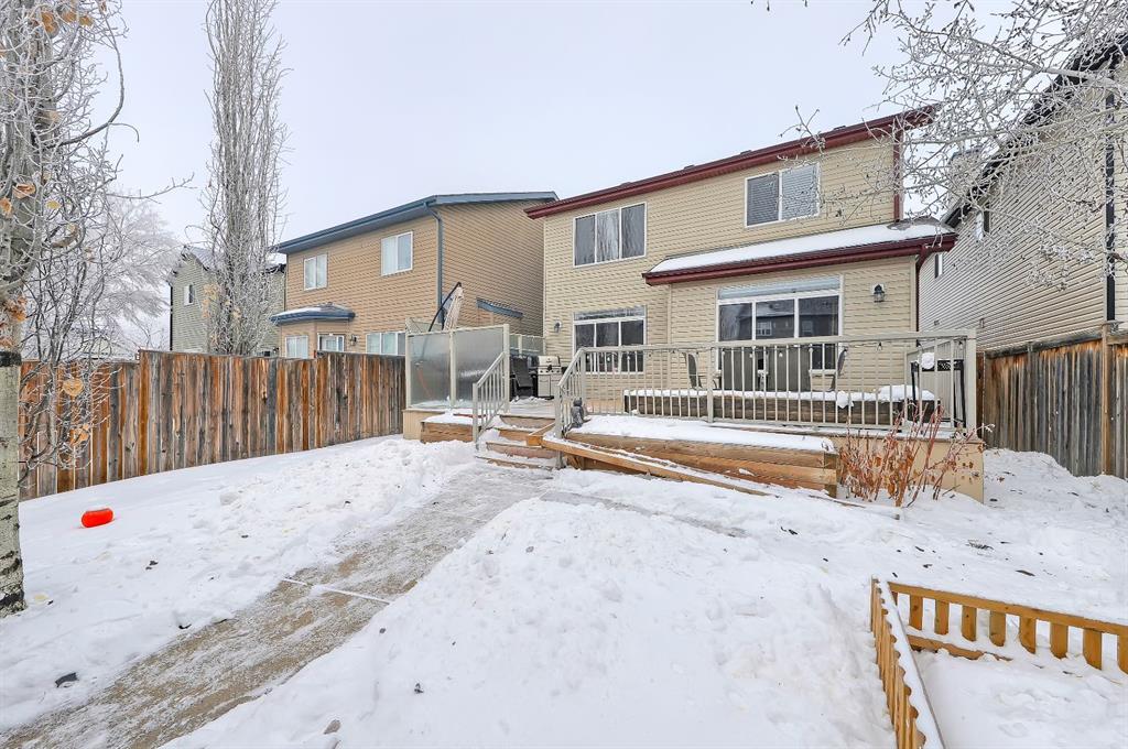 **OPEN HOUSE TODAY, FEBRUARY 1st from 1:00pm - 3:00pm** Located in the heart of Copperfield, this like-new and upgraded home offers over 2,600 sq. ft. of total developed living space (over 1,900 sq. ft. above grade), a fully finished basement, 3 bedrooms, 3.5 bathrooms, a sunny south-facing backyard, and a heated, oversized, double-attached garage. Thoughtfully designed with high ceilings and quality finishes throughout, this move-in-ready property is ideal for growing families or professionals seeking both comfort and functionality. The main floor features 9-ft ceilings, solid oak hardwood flooring, a bright, open layout, and oversized windows that fill the space with natural light. The kitchen includes stainless steel appliances, a gas range, a water filtration tap, an oversized island, and abundant cabinetry and counter space. The dining and living areas connect seamlessly, highlighted by a gas fireplace with a tile surround and wood mantle, as well as direct access to the backyard. Across the yard is the back lane, great alley access for RV’s or Trailers! A powder room and laundry with built-ins complete the level. Upstairs, carpeted stairs lead to three bedrooms and a spacious bonus room. The primary suite offers custom closet organizers and a private 4-piece ensuite with a soaker tub and separate shower. The fully developed basement provides additional flexible living space with a large rec area and a full spa-like bathroom with heated tile floors, perfect for guests, a home gym, or media room and already has a built-in surface for the perfect pool table! Enjoy the south-facing backyard with a large deck, privacy glass, expansive patio, and garden shed. Exterior updates include updated siding, soffits, fascia, and roof installed in 2021). Additional features include central AC, central vacuum, a water softener, fresh paint, heated + oversized garage with shelving. Copperfield is a fantastic community for buyers of all kinds, with a diverse and comprehensive range of nearby shops, services, and amenities, including grocery stores, coffee shops, professional services, restaurants, fitness options, and more. Schools, parks, playgrounds, and pathways are all within walking distance. This home also benefits from close proximity to Stoney Trail, Deerfoot, 52 Street, and the BRT, making transit to the city easy. Sorry, Time Machine in the garage not included!