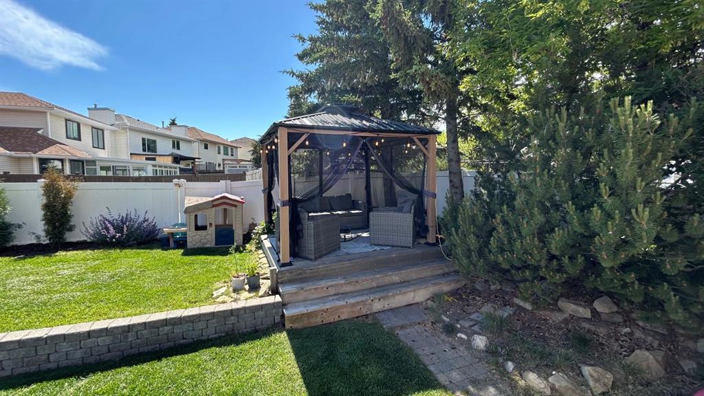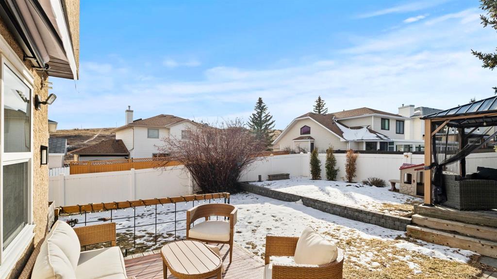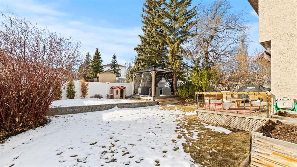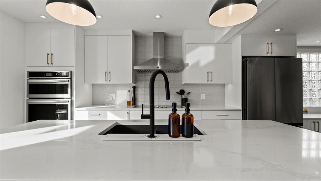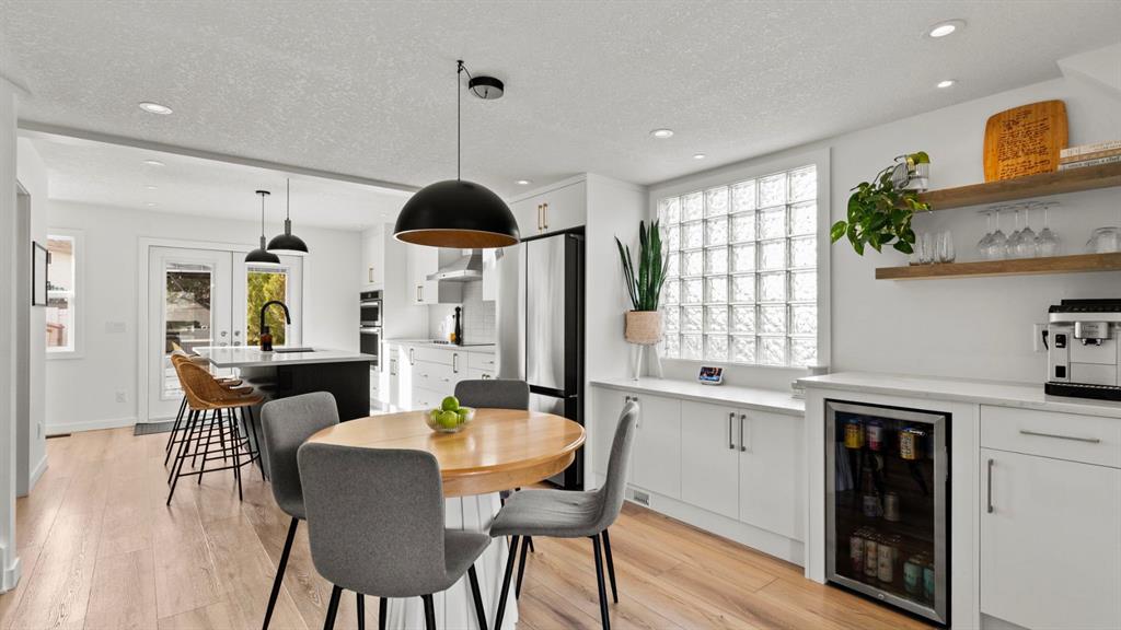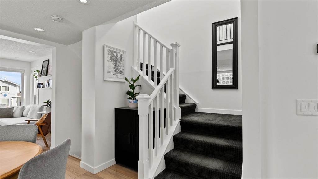 Welcome to this beautifully updated two-storey home in the highly desirable community of MacEwan Glen, offering the perfect balance of thoughtful renovations, functional living space, and an exceptional location. Situated on a corner lot and just steps from Nose Hill Park, this home provides immediate access to scenic walking paths and green space, while also offering quick connections to Stoney Trail, Deerfoot Trail, and a convenient commute to downtown via 14th Street. The home offers 1,373 sq ft of above-grade living space, plus an additional 543 sq ft in the fully developed basement, providing over 1,900 sq ft of total living space designed to adapt to a variety of lifestyles. The main floor has been fully renovated and showcases a bright, modern open-concept layout ideal for both everyday living and entertaining. Wide-plank flooring, recessed lighting, and large windows create a warm and welcoming atmosphere throughout. The living room flows seamlessly into the stunning kitchen, where crisp white cabinetry, quartz countertops, contrasting dark accents, and a large centre island with seating take centre stage. High-end stainless steel appliances include an induction cooktop, built-in wall ovens, and a statement range hood, while stylish pendant lighting and a sleek tile backsplash complete the space. The adjacent dining area offers direct access to the west-facing backyard, perfect for enjoying afternoon sun and evening sunsets. A convenient powder room completes the main level. Upstairs, the home features three well-sized bedrooms, including a bright and inviting primary retreat with a walk-in closet and private ensuite bathroom. Two additional bedrooms provide excellent flexibility for children, guests, or a home office, all finished in a soft, neutral palette. A full main bathroom completes the upper level. The fully developed basement adds valuable and versatile living space. A spacious recreation room offers the ideal setting for movie nights, a play area, or a second family room. An additional fourth bedroom is perfect for guests or older children, while a dedicated office or flex space supports work-from-home needs. A full bathroom and a separate laundry room complete the lower level, creating a functional and comfortable extension of the home. Set in a quiet, family-friendly neighbourhood close to schools, parks, and everyday amenities, this MacEwan Glen home delivers exceptional lifestyle value combining proximity to nature, modern updates, and outstanding access to all areas of the city.