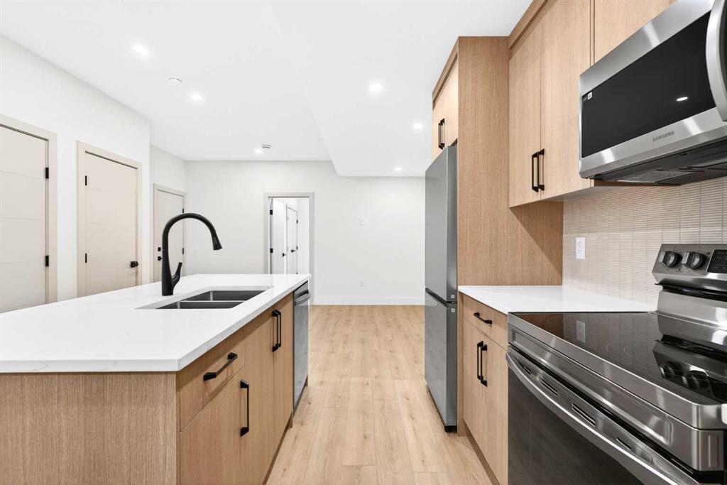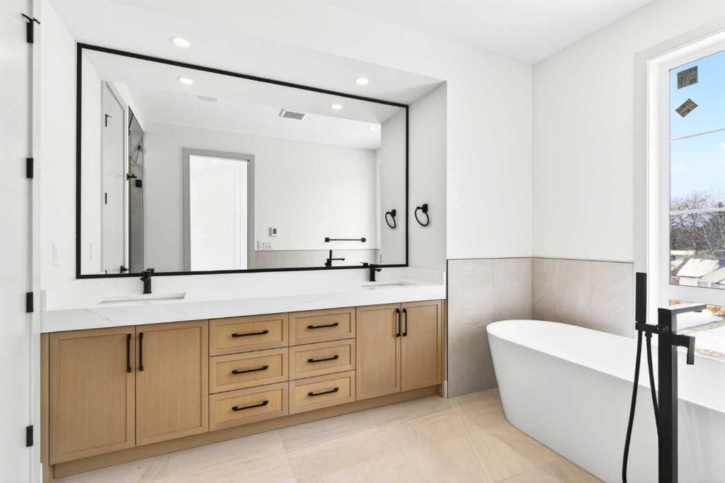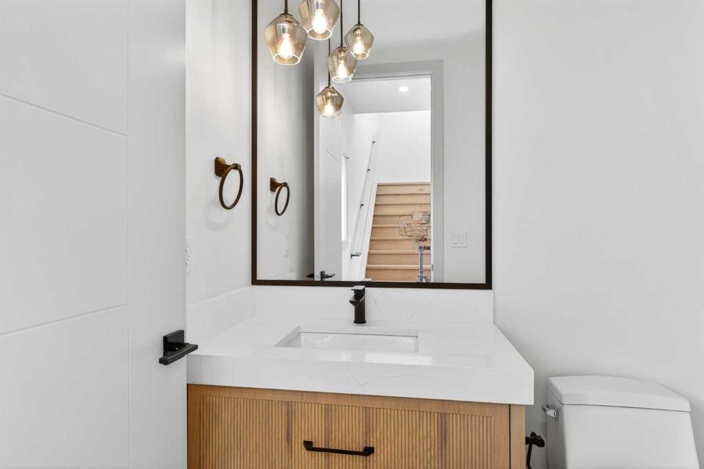 Glenbrook’s Finest! Step into a bright and inviting open-concept main floor where function meets elevated design. At the front of the home, a beautiful formal dining area sets the stage for stylish gatherings and elegant dinner parties. Just beyond, the chef-inspired kitchen boasts a massive waterfall quartz island, double-wide fridge, Bosch cooktop, wall oven, and dishwasher. Adjacent to the island, a thoughtful prep and storage area includes a built-in bar fridge and extended cabinets with convenient pull-out drawers—keeping everything organized and within easy reach for seamless entertaining. Warm neutral tones, built-in ceiling speakers, and timeless finishes create the perfect backdrop for both daily living and hosting with ease. At the rear of the home, a cozy fireplace lounge flows effortlessly onto a sprawling east-facing deck—ideal for enjoying quiet sunny summer mornings or relaxed evenings. Just off the kitchen, a spacious mudroom offers even more custom cabinetry to store your family’s essentials. Upstairs, a versatile loft area offers the perfect spot for a home office or reading nook. The massive primary retreat features heated floors in the spa-inspired ensuite, and a deep soaker tub. Two additional generously sized bedrooms and a stylish four-piece bath complete the upper level. Downstairs, the home offers even more flexibility with a bright and spacious legal basement suite (pending final City of Calgary approval). Featuring two private bedrooms and a large open living area, this level is ideal for extended family, guests, or future rental income. This home isn’t just beautifully finished—it’s a thoughtful investment in style, space, and long-term potential.