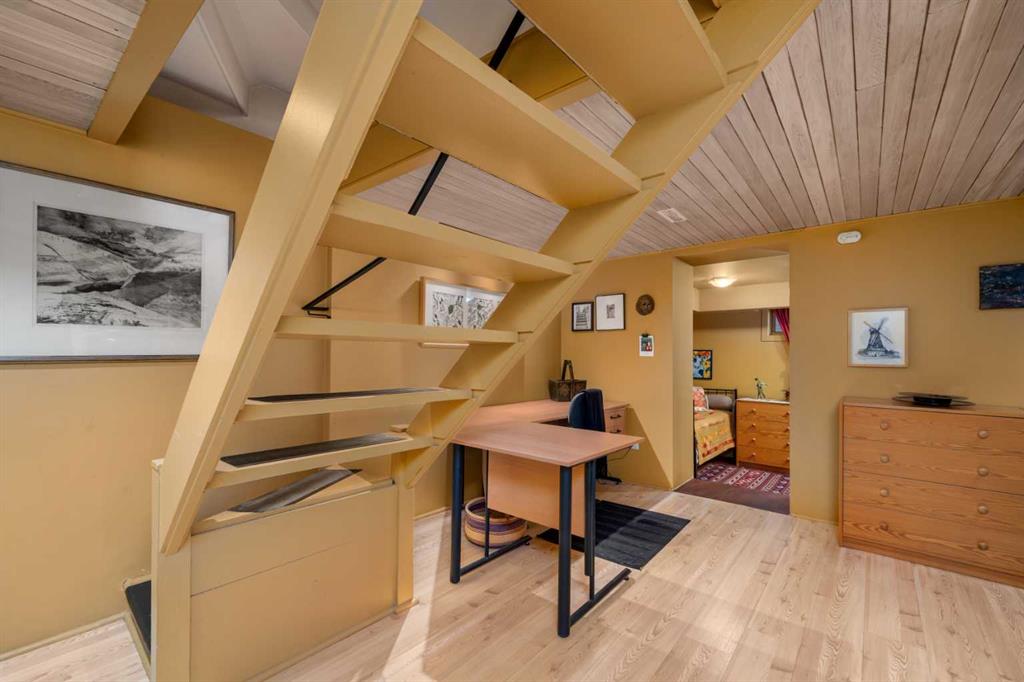 Ideally located in the heart of West Hillhurst in Calgary's coveted NW inner-city! Lovingly maintained by longtime owner, this 1.5 storey was extensively renovated in 1997, adding 9' to house, up and down including the basement. Spacious main floor features hardwood, loads of light and includes kitchen w gas stove, newer fridge, maple cabinets, pantry....large living room bumped out to include a gorgeous wood-burning FP with contemporary concrete mantle and hearth, large south-facing windows... patio doors open onto deck.....dining room seats many guests.....full bath! Upper features big primary bedroom with massive closet space, reading nook, gas FP and full set of french doors opening to a quaint juliet balcony......2nd bedroom is also large and has more storage and space for your office. Fully finished basement leads to cozy media room with electric FP, tongue & groove cedar ceiling, laminate floor, new lighting, tons of storage space, sewing/craft area, flex room (add an egress window for 3nd bedroom), full bathroom, large laundry room/utility room with sink...custom railing is removable for moving in and out!! Fully fenced, super private south yard is low maintenance with deck, planting boxes, perennials and many trees. Over-sized single garage features a workshop space. Location second to none!!! Walk score 85%, bikers paradise at 90%, transit at your door, Bowview Outdoor Pool and West Hillhurst Community across the street, next to all levels of schools, U of C, SAIT, shopping, cafes and moments to endless walks on the Bow River pathways!! It's a 10!