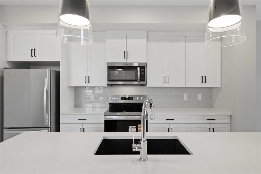 1869 SQ.FT. | 4 BEDS | 3.5 BATHS | MAIN FLOOR BED & BATH | SPICE KITCHEN | REAR DECK | HARDIE BOARD SIDING | SIDE ENTRANCE + 9" BASEMENT CEILING | BONUS ROOM | HUGE PIE SHAPED LOT | SE FACING BACKYARD | FRONT LANDSCAPING INCLUDED | Built by Crystal Creek Homes, this is one of the best values currently available in Belvedere, offering more space and more hard-to-find features than comparable homes at this price point. Set on a rare pie-shaped lot with a huge southeast facing backyard and completed 10’×10’ deck, this home delivers outdoor space that most Belvedere homes simply don’t have. Inside, the light and airy modern finishings create an inviting feel across 1,869 sq ft, thoughtfully designed for growing or multi-generational families with 4 bedrooms and 3.5 baths, including a main-floor bedroom and full bath, a bonus room, and a great room with fireplace. The spice kitchen, durable Hardie board siding, and separate side entrance with 9’ foundation add real long-term value, with strong potential for a future legal basement suite (subject to City approval and permitting). Located on a quiet street, just steps from the future school site and soccer field, and minutes from Costco, Walmart, Cineplex, restaurants, shopping, Chestermere, and quick access to Stoney Trail, this is a home that offers everyday convenience. Homes with this combination of lot size, layout, and upgrade package rarely come available—and it comes with the added confidence of a full builder warranty. Book your showing today!