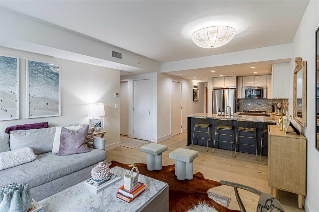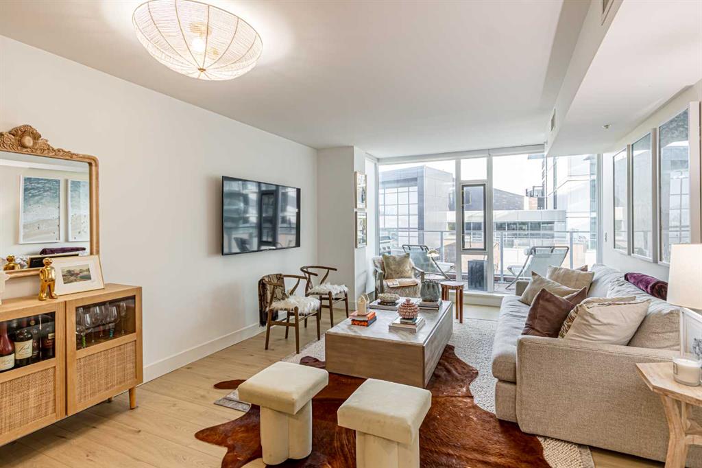 Discover the ultimate condo living experience in this stunning 2 bed + den unit at Evolution by Bosa Developments, nestled in the vibrant East Village of Downtown Calgary. This immaculate residence boasts an impressive and rare **500+ sq ft private patio** with sunny south exposure, a rare find in condo living—perfect for entertaining or enjoying a quiet evening outdoors. The thoughtful floor plan includes two spacious bedrooms, with the primary suite featuring an ensuite bathroom and a walk-in closet. The stylish kitchen is equipped with upgraded stainless steel appliances, including a gas range, elegant granite countertops, and a convenient breakfast bar, seamlessly flowing into the adjoining dining room and spacious living room, which provides direct access to the coveted outdoor space. Additional highlights include in-suite laundry, a den for your home office or extra storage, and parking for two vehicles in a tandem stall—eliminating the hassle of street parking and car shuffling. Residents enjoy exceptional building amenities, including concierge services, two fitness rooms, a steam room, sauna, and underground visitor parking. Located just steps away from transit, the C-train, river pathways, the zoo, and Prince's Island Park, this condo offers an unbeatable lifestyle in a thriving community. Don’t miss this wonderful opportunity to call this immaculate space home!