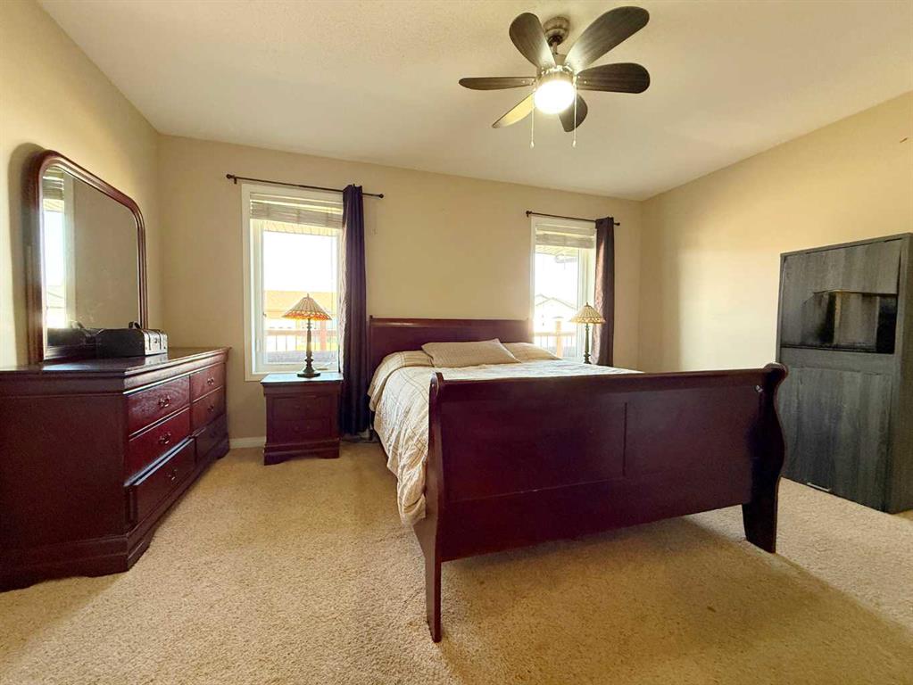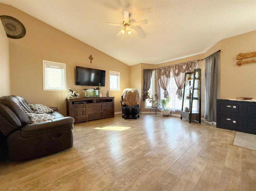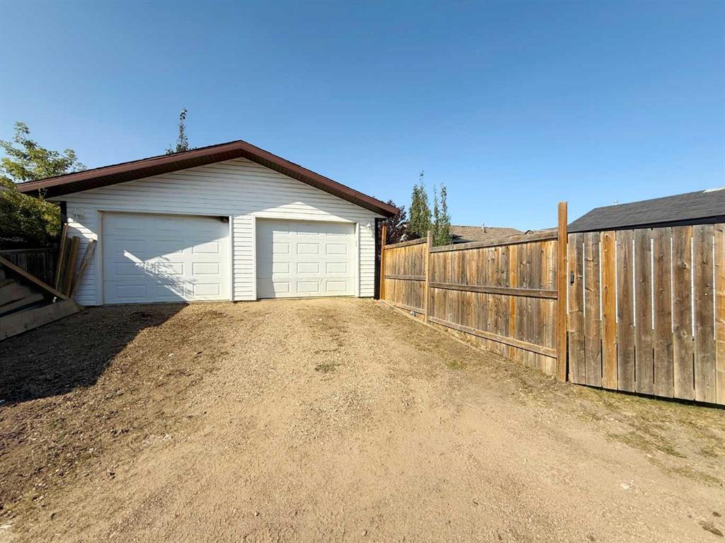 Welcome to this fantastic family home, fully finished up and down, with great curb appeal and a welcoming front porch. Inside, you’ll love the bright vaulted living room and kitchen, creating an open and inviting atmosphere. The eat-in kitchen offers stainless steel appliances, ample maple cabinets and a corner pantry for extra storage. The main floor features 3 bedrooms, including a primary suite with a 3 pc ensuite, a 4 pc main bath, and the added convenience of main floor laundry. Downstairs, you’ll find 2 spacious bedrooms, a large family room, a 4 pc bathroom, and a generous storage room. The backyard is fully fenced and landscaped, complete with a deck for outdoor enjoyment. A 24X24 detached garage, insulated and heated, provides plenty of parking and workspace. An asphalt parking pad located in the front offers additional parking for ease and convenience. Situated on the east side of Wainwright, this home is close to the new school currently under construction, and within walking distance to amenities, walking trails, and bike paths. Well maintained and move-in ready, this home is a must-see!