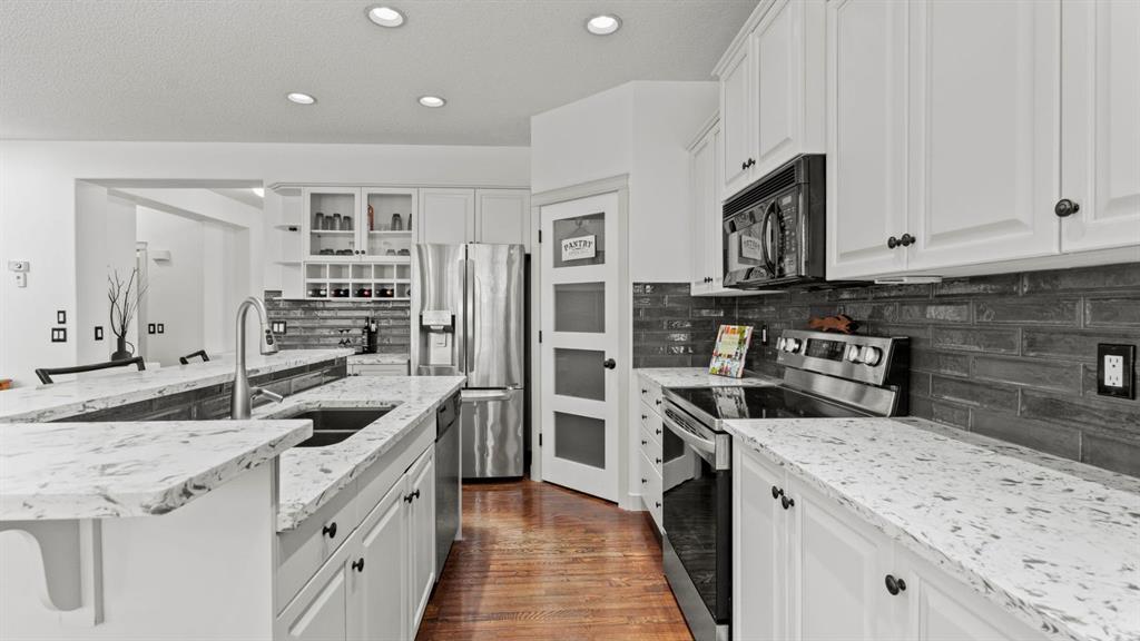 Welcome to this beautifully maintained two-storey home in the heart of Cranston, perfectly positioned with no neighbours on one side and a tranquil green space behind, offering a rare combination of privacy, space, and connection to nature. From the moment you arrive, the home’s setting stands out — tucked beside pathways and open green space, creating a peaceful backdrop for everyday living. Inside, the main level is thoughtfully designed for both family life and entertaining, featuring warm hardwood floors, soaring ceilings, and an abundance of natural light throughout. A formal dining room welcomes you at the front of the home, providing an elegant space for gatherings and special occasions. At the heart of the home is the spacious kitchen, showcasing crisp white cabinetry, quartz countertops, stainless steel appliances, a large centre island with seating, and a walk-in pantry. The kitchen flows seamlessly into a bright breakfast nook, where expansive windows overlook the backyard and green space beyond — a perfect spot for morning coffee or casual meals. The adjacent living room is both inviting and impressive, anchored by a gas fireplace with architectural surround and open-to-above ceilings that enhance the sense of space and light. Oversized windows frame serene outdoor views while filling the room with sunshine. The main level is completed by a convenient laundry room, powder room, and a welcoming foyer that sets the tone for the rest of the home. Upstairs, the large primary suite serves as a true retreat. Generously sized to accommodate a king bed and additional seating, it offers a calm and comfortable atmosphere. The ensuite features dual vanities, a deep soaker tub, and a separate shower, while the walk-in closet provides excellent storage and organization. Two additional bedrooms on the upper level are well-proportioned and versatile, ideal for children, guests, or home office use, and are complemented by a full bathroom. The fully developed basement adds exceptional flexibility, featuring a spacious family and recreation area, perfect for movie nights, games, or a home gym. Two additional bedrooms and a full bathroom make this level ideal for guests, teenagers, or extended family living, while still offering ample storage space. Step outside to the beautifully landscaped backyard, where multiple outdoor living areas invite you to relax and entertain. A raised deck, lower patio, mature trees, and direct access to the green space and pathways create a private outdoor oasis — one of the sellers’ favourite features of the home. Offering 2,415 sq ft above grade plus an additional 1,189 sq ft in the fully developed basement, with three bedrooms upstairs and two more below, this home delivers exceptional space, privacy, and lifestyle in one of Calgary’s most sought-after communities. Close to schools, parks, pathways, amenities, and easy access to major routes, this is Cranston living at its best.