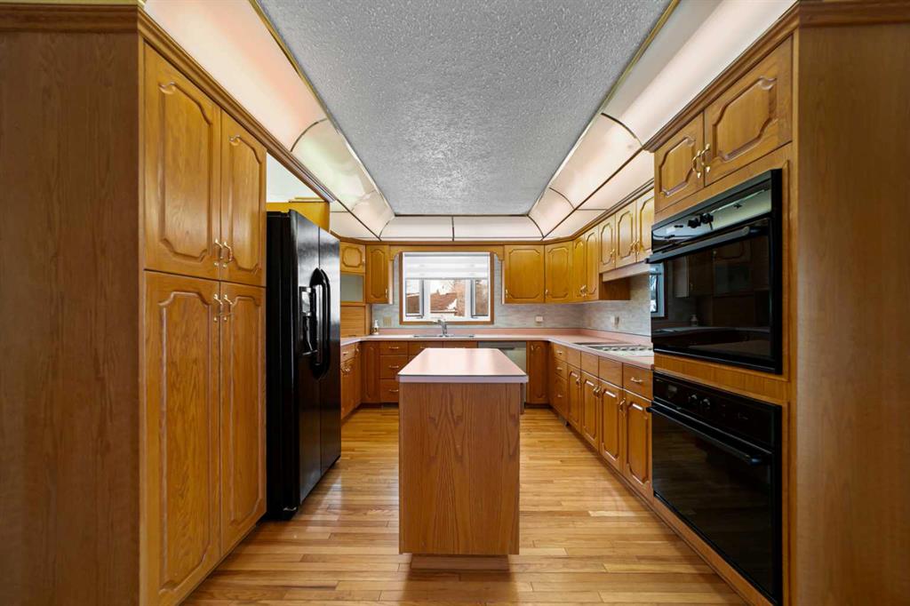 Welcome to this exceptionally spacious family home in Sedgewick, offering 3,100+ sq. ft. of living space and a rare main-floor layout with 5 bedrooms! Designed for busy households, the main level features 2 bathrooms, a massive family room with a wood-burning fireplace featuring brick surround and mantle, plus an impressive 550+ sq. ft. living room—perfect for gathering, entertaining, or giving everyone room to spread out. The kitchen is built for function and hosting, offering a large layout with a moveable island, double built-in ovens, an electric cooktop with griddle, plus built-in fans and fat trays, along with a fridge with water & ice and a new dishwasher. You’ll also love the mix of hardwood flooring and some newer flooring in bedrooms, plus thoughtful upgrades throughout including pot lights, closet organizers, central air conditioning, and plenty of storage options. The finished basement adds even more flexibility with a family room, 2-piece bathroom, oversized storage room, utility room, and a laundry room set up for TWO washers and TWO dryers—an incredible bonus for large families. Additional features include a laundry chute for added convenience. Outside, enjoy a fully fenced backyard with extra storage options, and the attached double garage is finished, heated, and upgraded with LED lighting. Located just a couple blocks from the K–12 school, playgrounds, and Main Street, this is the ideal home for growing families looking for space, comfort, and convenience.