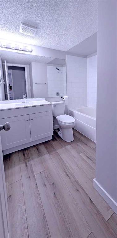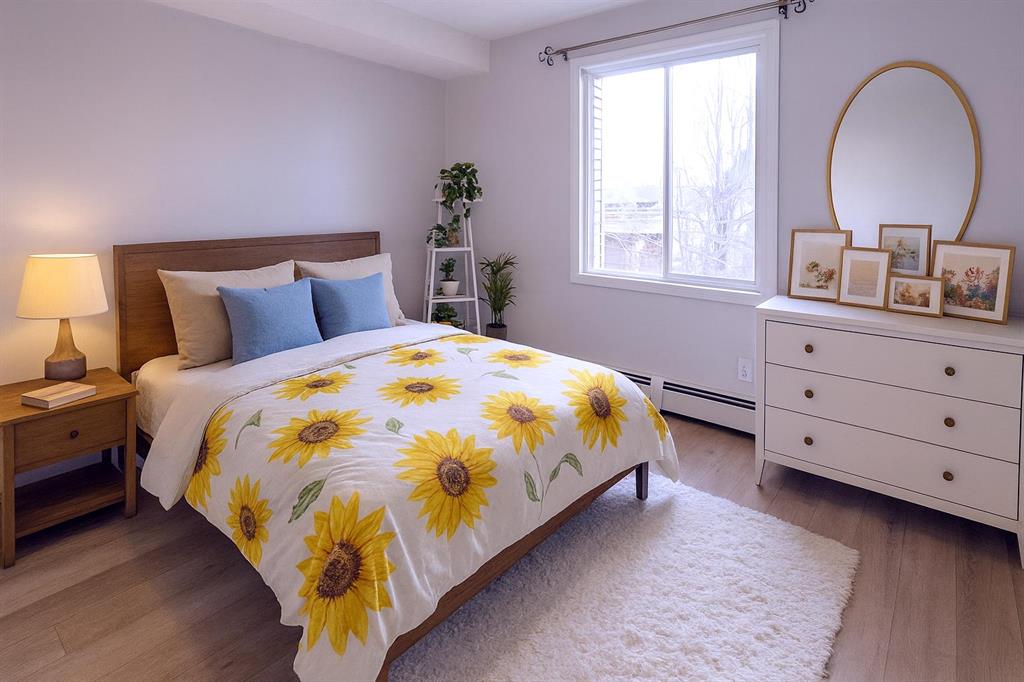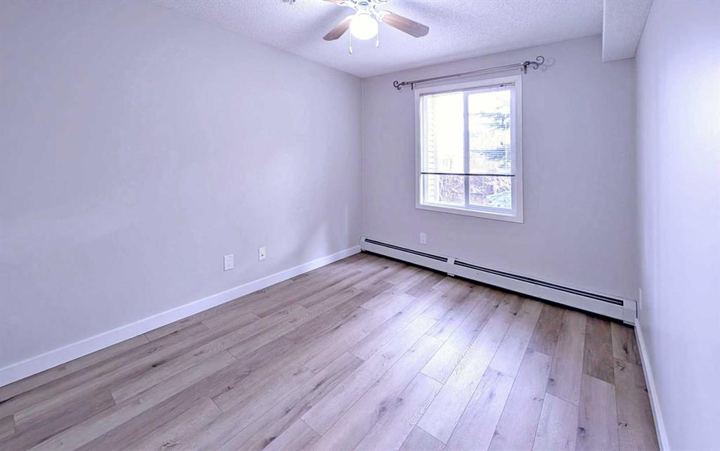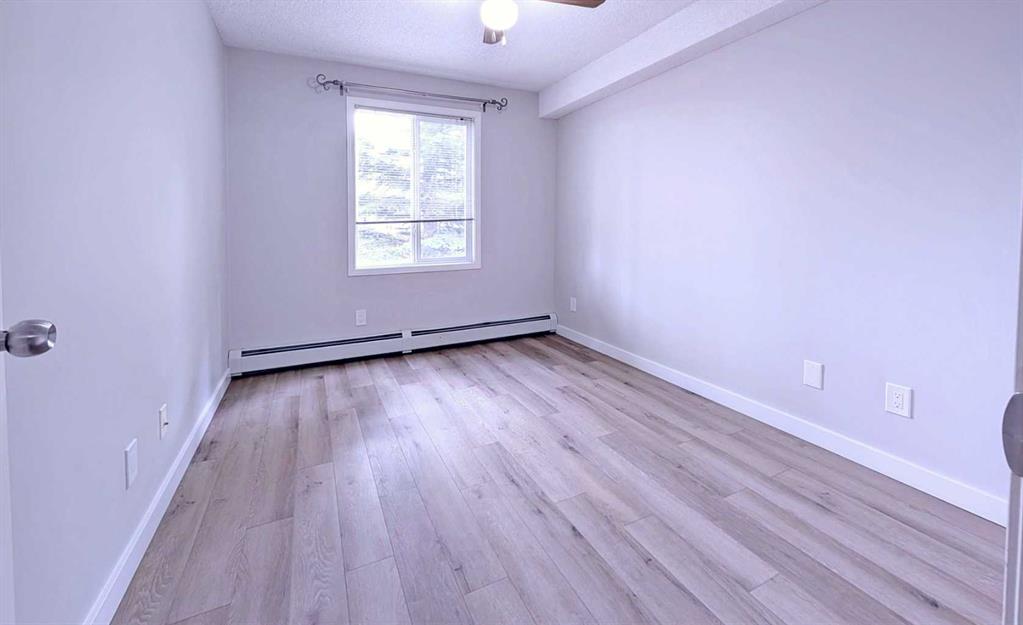 A beautifully updated 2-bedroom condo offering exceptional value, complete with two parking stalls—one titled underground and one surface. Ideal for first-time buyers with multiple vehicles or investors seeking a turnkey opportunity. This inviting home features brand-new luxury vinyl plank flooring with new baseboards throughout, creating a seamless and modern aesthetic. The upgraded kitchen showcases newer stainless steel appliances, freshly installed cabinet doors, and contemporary laminate countertops. The entire unit has been professionally repainted, including the ceilings, giving it a crisp, refreshed feel. The spacious living room is filled with natural light thanks to large sliding doors that open onto a private, south-facing balcony equipped with a BBQ gas line. Surrounded by mature trees, this outdoor space offers a peaceful retreat—perfect for summer evenings and quiet relaxation. Both bedrooms are generously sized, with excellent closet space, including a walk-in closet in one of the rooms. A well-appointed 4-piece bathroom and the convenience of in-suite laundry complete the interior. Located within walking distance to an array of amenities—restaurants, shops, parks, schools, and public transit—this condo offers everyday convenience. Quick access to Stoney Trail and Fish Creek Park makes commuting and outdoor recreation effortless. A stylish, move-in-ready home in a prime location—this is an opportunity you won’t want to miss.