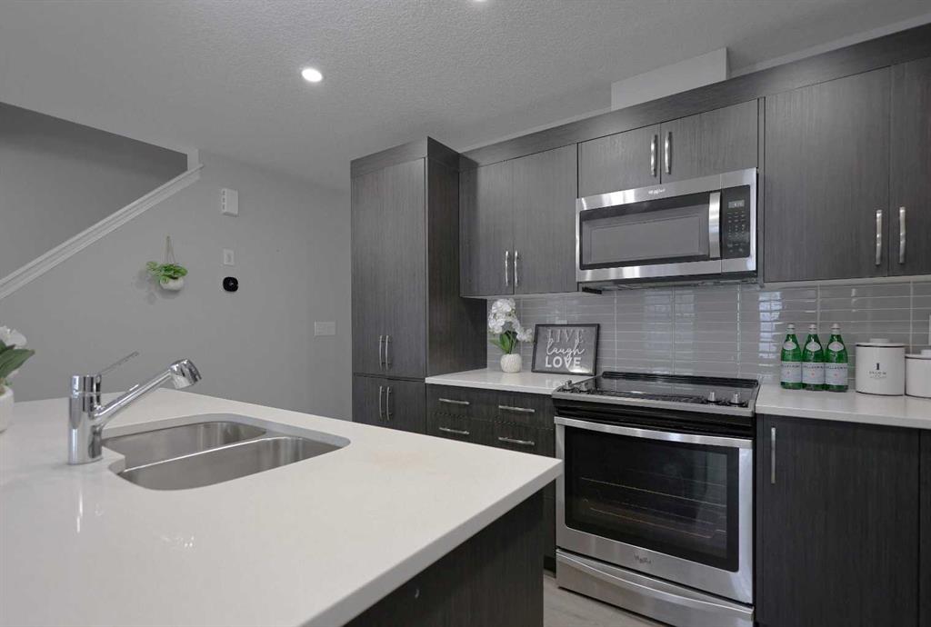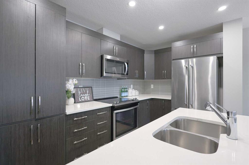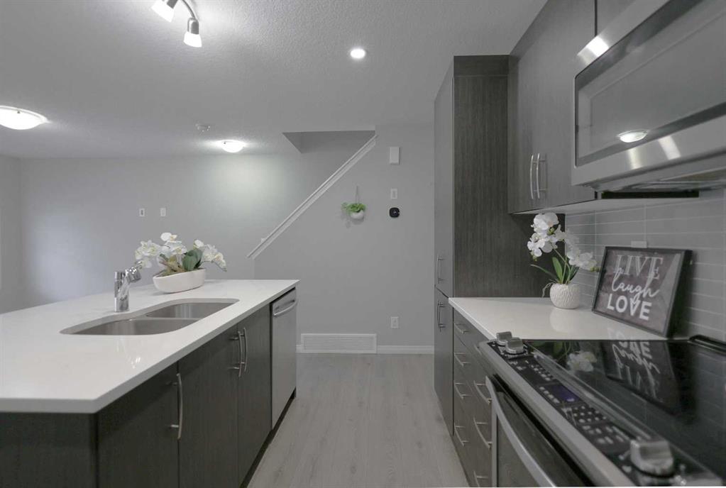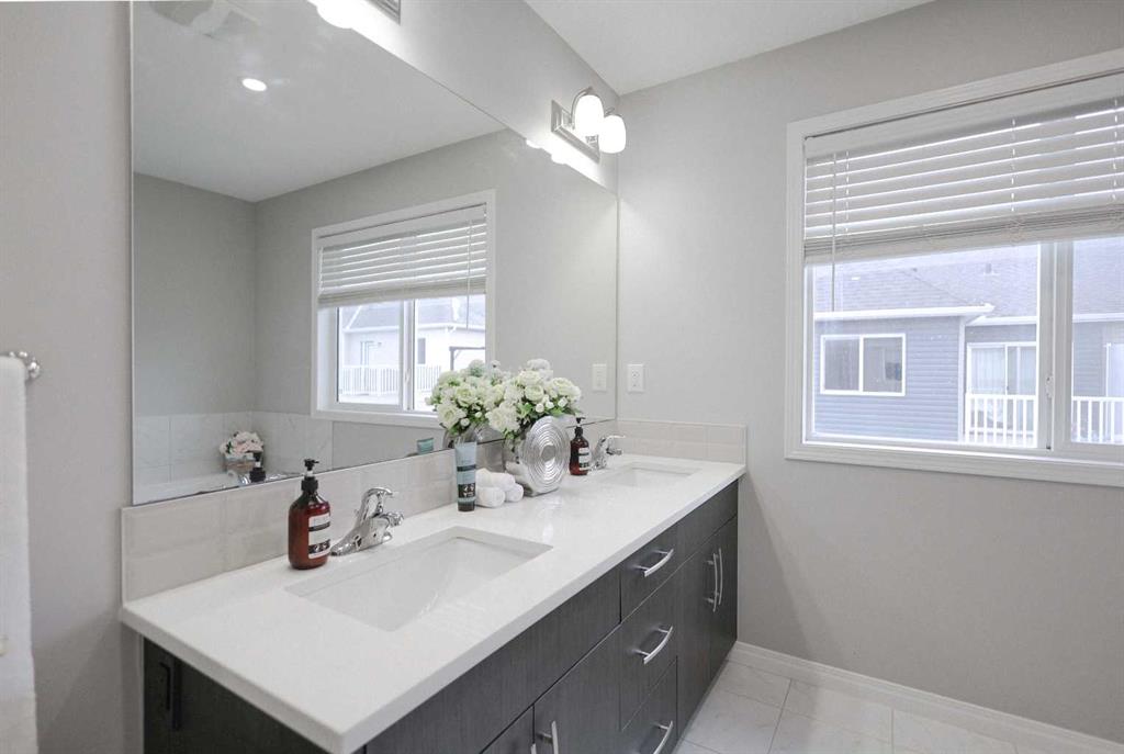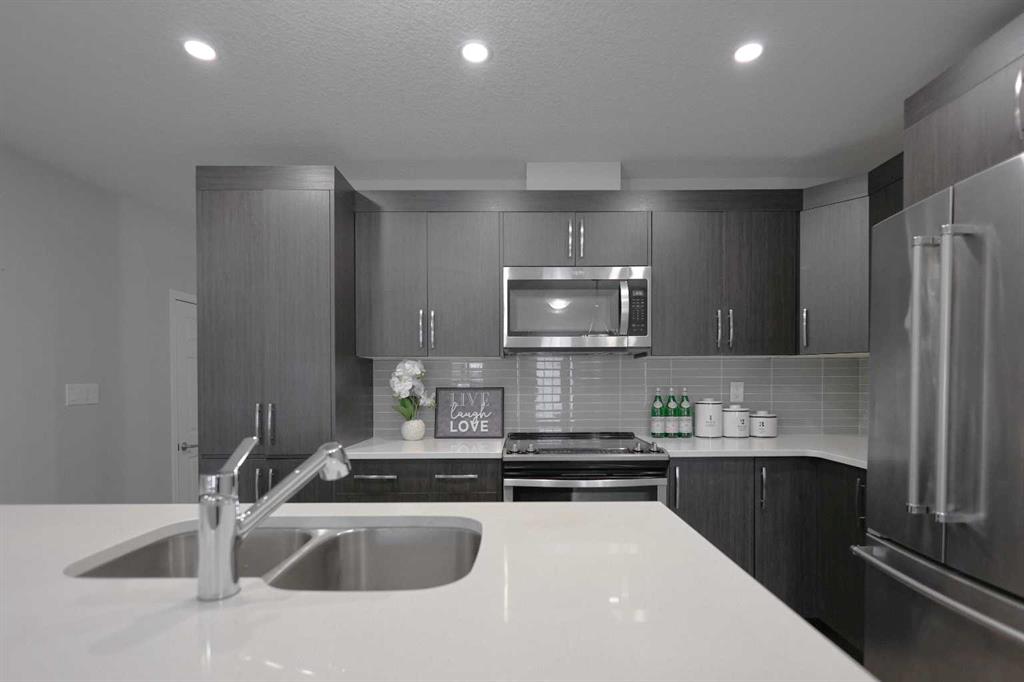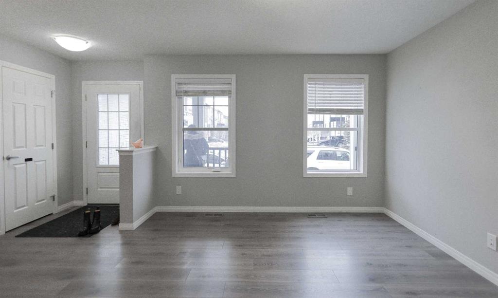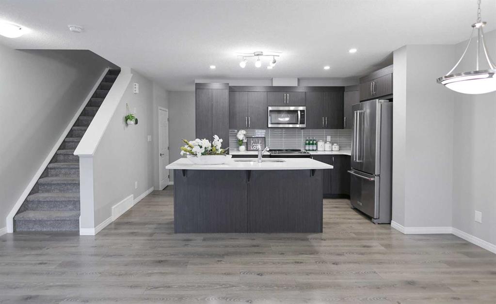 NO CONDO FEES | DOUBLE ATTACHED GARAGE | 3 BEDROOMS! Welcome to this beautifully upgraded home located in one of Airdrie’s most sought-after communities. Offering 3 bedrooms, 2.5 bathrooms, and a thoughtfully designed layout, this property truly has it all. Upon entry, you’ll immediately be drawn to the stunning chef-inspired kitchen, the focal point of the main floor. It features stainless steel appliances, sleek cabinetry, a modern backsplash, elegant color tones, ample counter space, and a large island with generous seating—perfect for entertaining. The kitchen seamlessly flows into the open-concept living room, where two large windows flood the space with natural light. Beyond the main living area, you’ll find a functional mudroom with direct access to the rear double attached garage, along with a conveniently tucked-away powder room. Upstairs, the primary bedroom is a true retreat, complete with a luxurious 5-piece ensuite showcasing white marble-style tile, dual sinks, and abundant natural light. A spacious walk-in closet and private balcony complete the space—ideal for enjoying your morning coffee or a quiet moment with a book. The two additional bedrooms are thoughtfully separated from the primary suite by the upper-level laundry area with side-by-side washer and dryer, offering added privacy. These bedrooms share a generously sized bathroom with dual sinks, perfect for families. The undeveloped basement offers excellent potential to customize a space that suits your family’s needs and lifestyle. Additional highlights include knockdown ceilings, pot lights, and ample storage. Ideally located with easy access to parks, schools, shopping, and Calgary, this park-front home delivers comfort, style, and convenience—all with no condo fees.