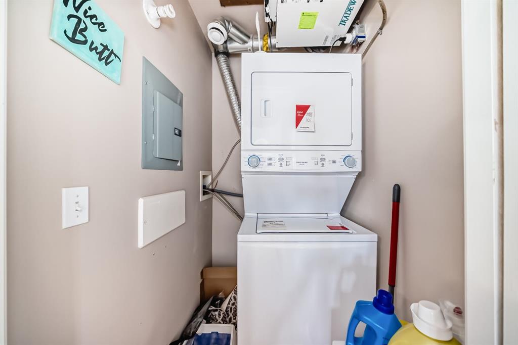 Bright and beautifully designed, this 753 square foot one bedroom plus den townhome offers both comfort and functionality. VAULTED CEILINGS and large windows fill the home with an abundance of natural light, enhancing the open-concept living space. The kitchen flows into the living & dining space, provides ample counter space, plenty of cupboards AND a walk-in pantry! The large den can be used for a home-office, guest area or bonus living space! Comfort is elevated with IN-FLOOR HEATING throughout and the efficiency of a tankless hot water system. The bright spacious bedroom and 4 piece bathroom complete this layout. Enjoy the added benefit of LOW CONDO FEES and a prime location. Close to parks, playgrounds, shops & minutes away from Stoney Trail for an easy commute. An excellent space for first-time home buyers, investors, or if you are looking to downsize.
