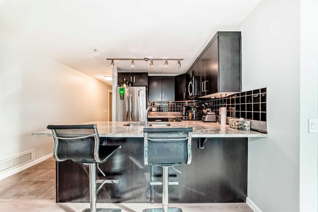 Welcome to SASSO, a sleek addition to Calgary’s vibrant Beltline. Surrounded by some of the city’s best dining, shopping, and entertainment, this unbeatable location is just steps from 17th Avenue, Stampede Park, the BMO Centre, and the downtown core. With the Victoria Park LRT Station right across the street, getting anywhere in the city is effortless, making both work and play completely within reach. This bright two bedroom, two bathroom condo features a thoughtfully designed single level layout with a modern, neutral palette, ideal for first time buyers, young professionals, or investors. The contemporary kitchen is equipped with granite countertops, stainless steel appliances, and a generous sized eating bar, perfect for both everyday living and entertaining. oversized windows flood the open concept living and dining area with natural light, opening onto a spacious wraparound terrace, offering stunning views of the downtown cityscape. The primary bedroom is complete with a walk-in closet and four-piece ensuite, while the second bedroom provides flexible space for guests or a home office. Residents of this 18+ building enjoy an exceptional collection of premium amenities, including full concierge service, a fully equipped fitness centre, sauna, steam room, hot tub, private movie theatre, games and recreation room, as well as secure underground parking. This unit also includes a heated underground parking stall and a dedicated storage locker. This is an outstanding opportunity to experience urban living at its finest, where location, lifestyle, and value come together in a truly remarkable residence. Schedule your private showing today and experience everything SASSO has to offer.