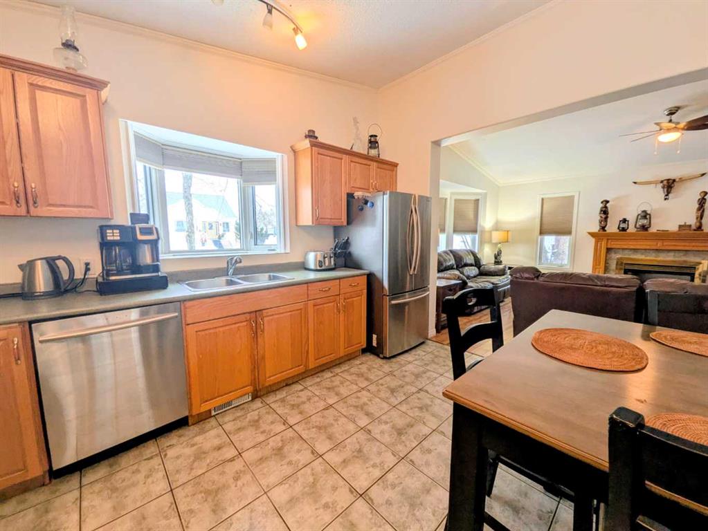 Welcome home to this beautifully maintained bungalow in the heart of Rycroft. This inviting home offers 3 bedrooms and 2 bathrooms, including a private primary suite with ensuite, providing comfort and functionality for families or downsizers alike. The open-concept living space is filled with natural light and showcases soaring ceilings, large bay windows, and a cozy gas fireplace, perfect for both everyday living and entertaining. The kitchen is thoughtfully designed with ample oak cabinetry, stainless steel appliances, and a gas stove, making it as practical as it is charming. Recent updates add peace of mind and value, including a shingled roof replaced just 2 years ago, a hot water tank replaced 3 years ago, and a newly paved driveway completed 2 years ago. Situated on a beautifully landscaped double lot, this property offers plenty of outdoor space to enjoy. Additional features include a 12’ x 16’ shed and a 20’ x 24’ powered garage, ideal for storage, hobbies, or parking. This is a wonderful opportunity to own a move-in-ready home with space, updates, and small-town charm. A must see property in a community you’ll love to call home.