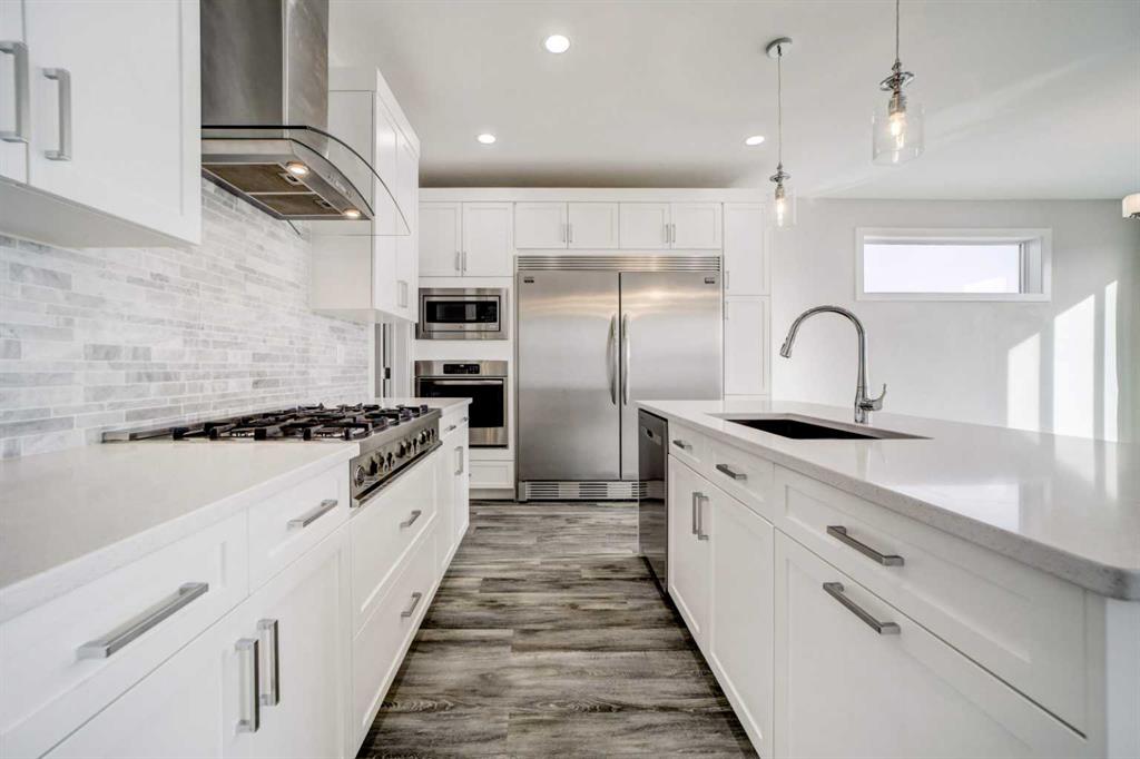 Step inside this bright, turnkey two-storey that fully developed and a walkout, with a second garage and second parking pad out back. Offering over 2,000 sq. ft. of fully developed living space, perfectly tucked away in a quiet keyhole close, but it lights up like a dream at night with its exterior Jemstone lights! The home feels welcoming, open and filled with natural light. Anchored by a warm living room feature fireplace in the main open space. Vinyl plank flooring throughout the main, a walk through pantry, and master class kitchen. You’ll find this house is built for real life and entertaining, complete with a built-in gas cooktop and a supersized refrigerator that truly sets the space apart. The layout flows effortlessly. Head upstairs and you’ll appreciate the ideal family setup: Full laundry set up, 2 bedrooms, a spacious bonus room, plus a primary suite that feels like a private retreat. With the massive walk around closet complete with makeup desk with lighting, and a showstopper ensuite with a soaker tub, walk-in shower, dual vanity, and plenty of room to unwind. Downstairs, the walkout basement adds serious flexibility with a fourth bedroom designed as a secondary primary —complete with its own walk-in closet, private ensuite, and dedicated laundry. You’ll also love the added convenience of the basement wet bar extras already in place, including a second refrigerator, microwave, and dishwasher—perfect for entertaining, extended family, or simply making day-to-day life easier. Step out from the upper level and onto your beautiful deck overlooking the large, fully fenced, irrigated backyard—an ideal space for kids, pets, and summer evenings. And the garage and parking here are in a league of their own: a double front attached garage, AND a double detached garage, PLUS a double rear parking pad. Homes with this layout, this level of finish, a walkout basement, and this garage/parking package don’t last—especially in a tucked-away close like this. Come experience the space, flow, and value in person, its undeniable!