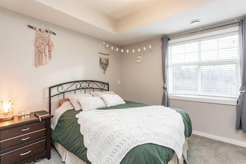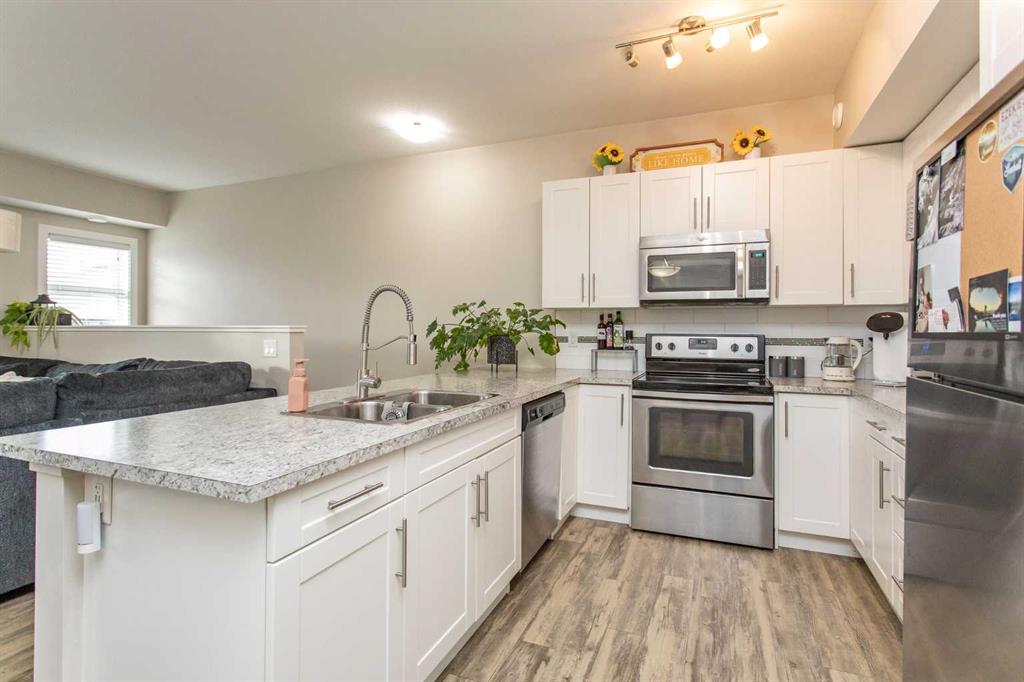 Find the perfect combination of comfort and convenience in this two bedroom two bath condo in Valley Crossing. This development is highly desirable for its quick and easy access to QEII for commuters and it's close proximity to great recreation options close to home - with the Abbey Centre and some beautiful walking trails just steps from your door. Ideally situated on the outside corner of the complex, where it enjoys a quiet privacy and a sunny south facing balcony overlooking the trees - this beautiful upper level unit provides a perfect tranquil escape after a long day. Warm and inviting and in excellent condition, this home has been obviously well maintained and gently lived in. An open floor plan with high ceilings and neutral plank flooring flows smoothly from a clean white kitchen with eating bar to a separate dining area and through a spacious bright living room out to that covered balcony. The primary bedroom is a private sanctuary and features both a walk-in closet and a full four piece ensuite. The second bedroom currently serves as a perfect home office, and there is a second full bath and a separate laundry/utility room with storage. Included are two powered parking stalls within easy view, and visitor parking close to the door. This building is pet friendly, professionally managed, and the condo fees are comparatively low.