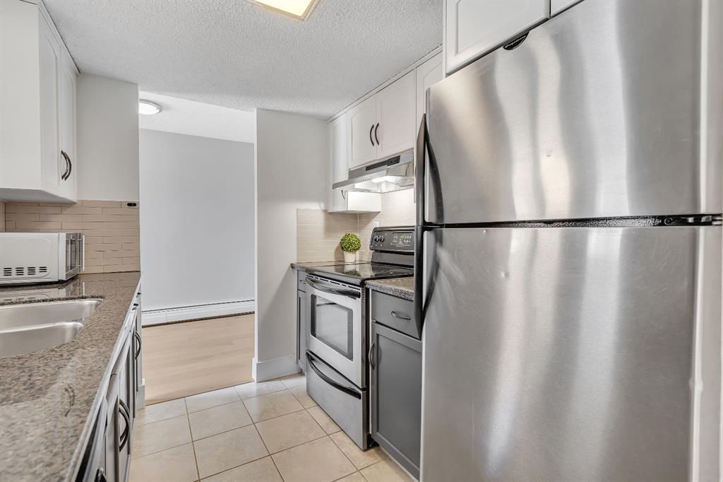 One of the most incredible private patio spaces I have ever seen in an inner city condo!! At over 350 square feet this awesome outdoor southwest living space will add so much to your lifestyle in terms of entertaining and relaxation and is absolutely perfect for pet lovers as this building is super pet friendly! This is an ideal location directly across from Connaught School and steps from the dedicated Connaught Off Leash Park at 14th Ave. & 11th Street. This unique 2 Storey corner unit feels far more like a townhouse unit than an apartment. Features include a huge living room and separate dining area with tons of natural light streaming through the south and west facing windows and the galley style kitchen boasts granite countertops, stainless steel appliances and is open to your entertaining space. Upstairs you will find a super spacious primary bedroom and generous sized 2nd bedroom along with full bath. This unit has in suite laundry, heated underground parking and an assigned storage locker. This location can’t be beat, close to shopping, restaurants, downtown, transit etc! Vacant for quick possession!